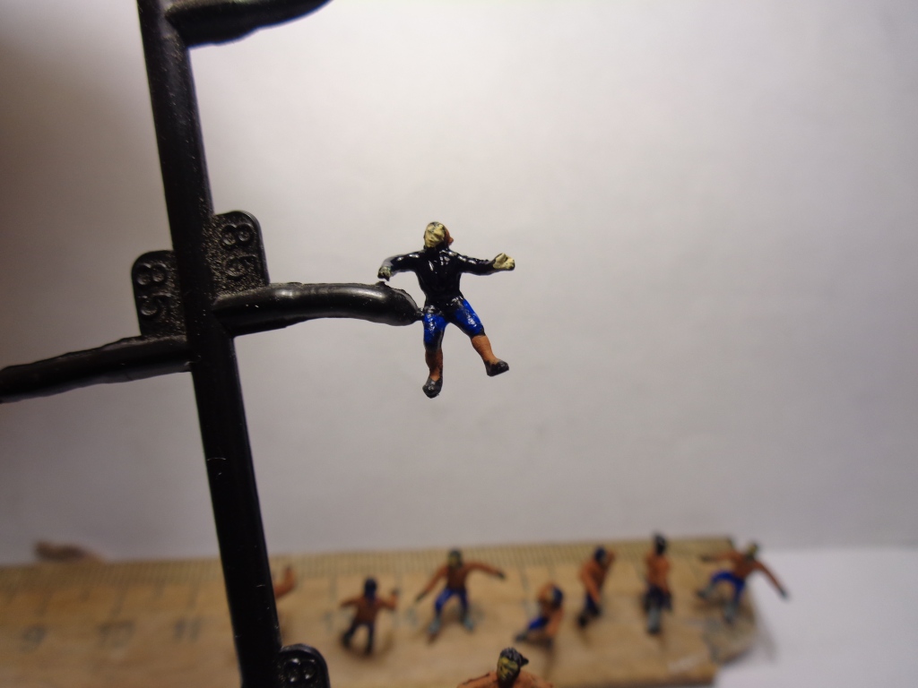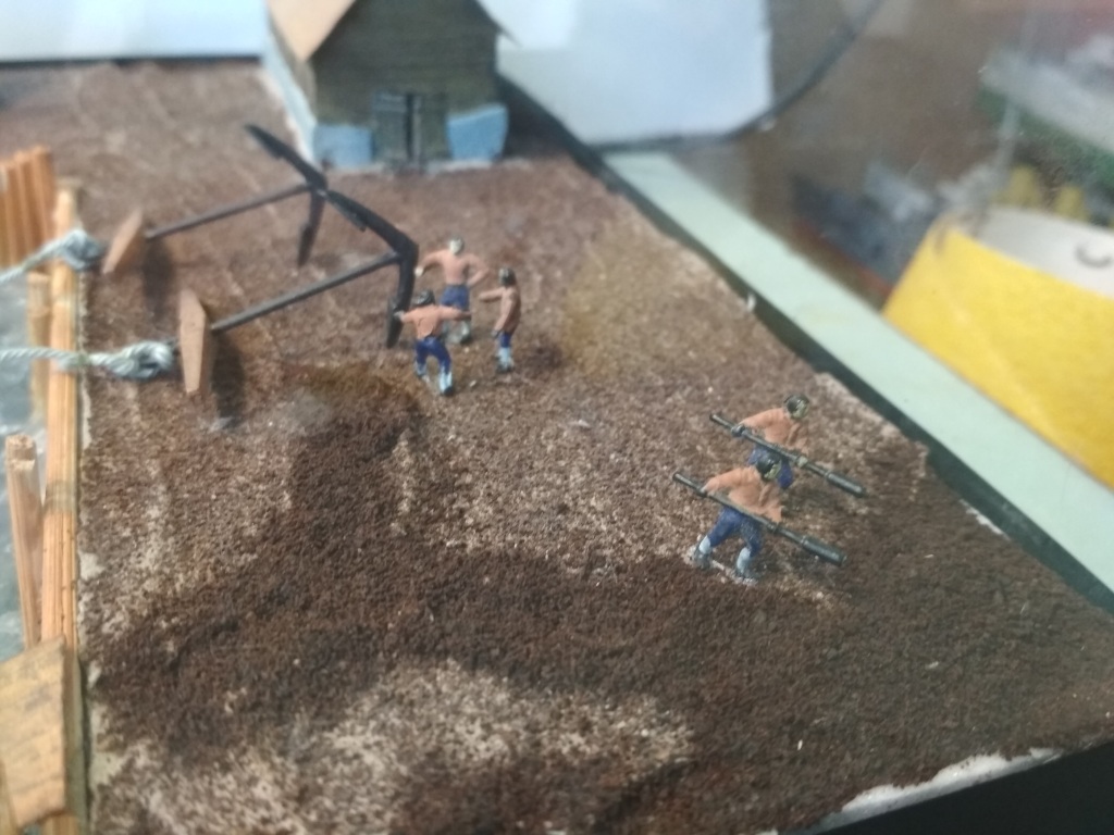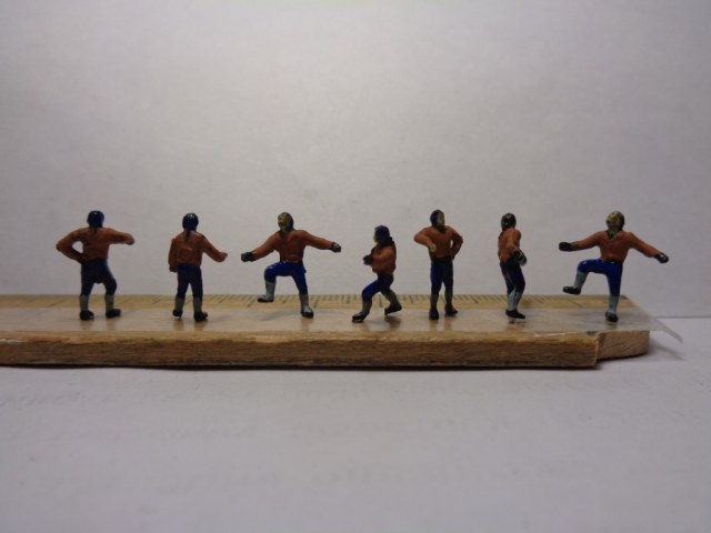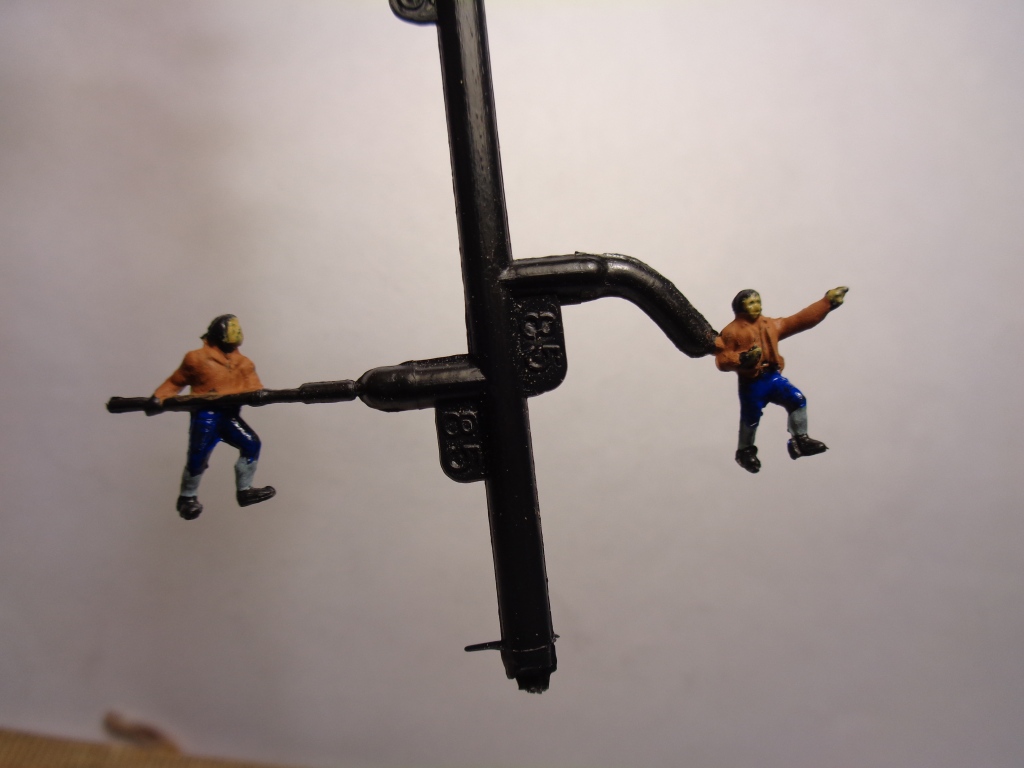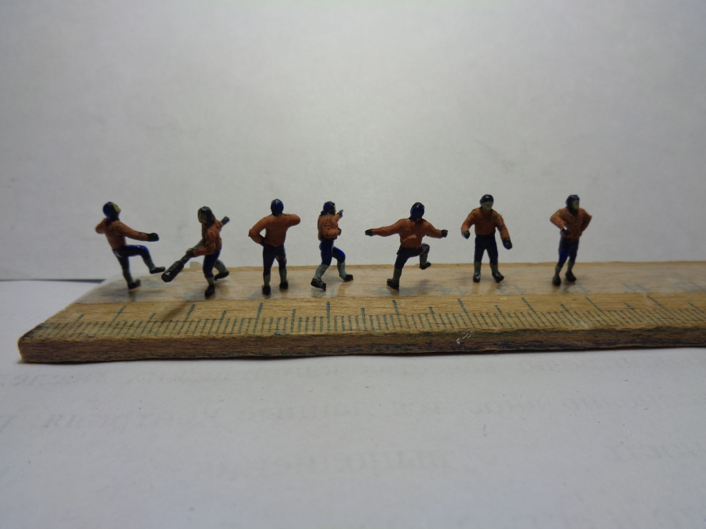 Поскольку черты лица у фигурок практически неразличимы, капнул на лица жиденькой "светлое дерево". А что? Люди на воздухе работают, ветер в харю способствует приобретению похожего цвета лица ( у самого такой бывает после работы на открытом воздухе). Потом смывкой, чтоб носы проявились.