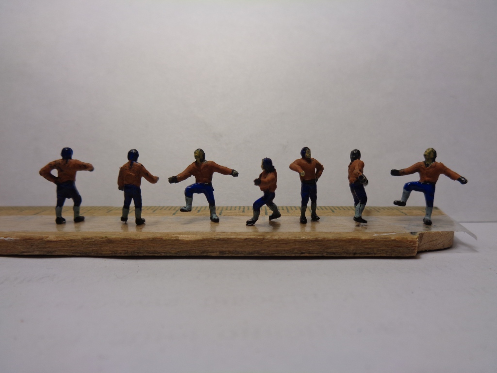 Представляю вам футбольную команду малышей-коротышей. Долго думал, как их размалевать. На фото из музея работяги одеты в светло-серые чулки, серые штаны и темно-серые кафтаны.