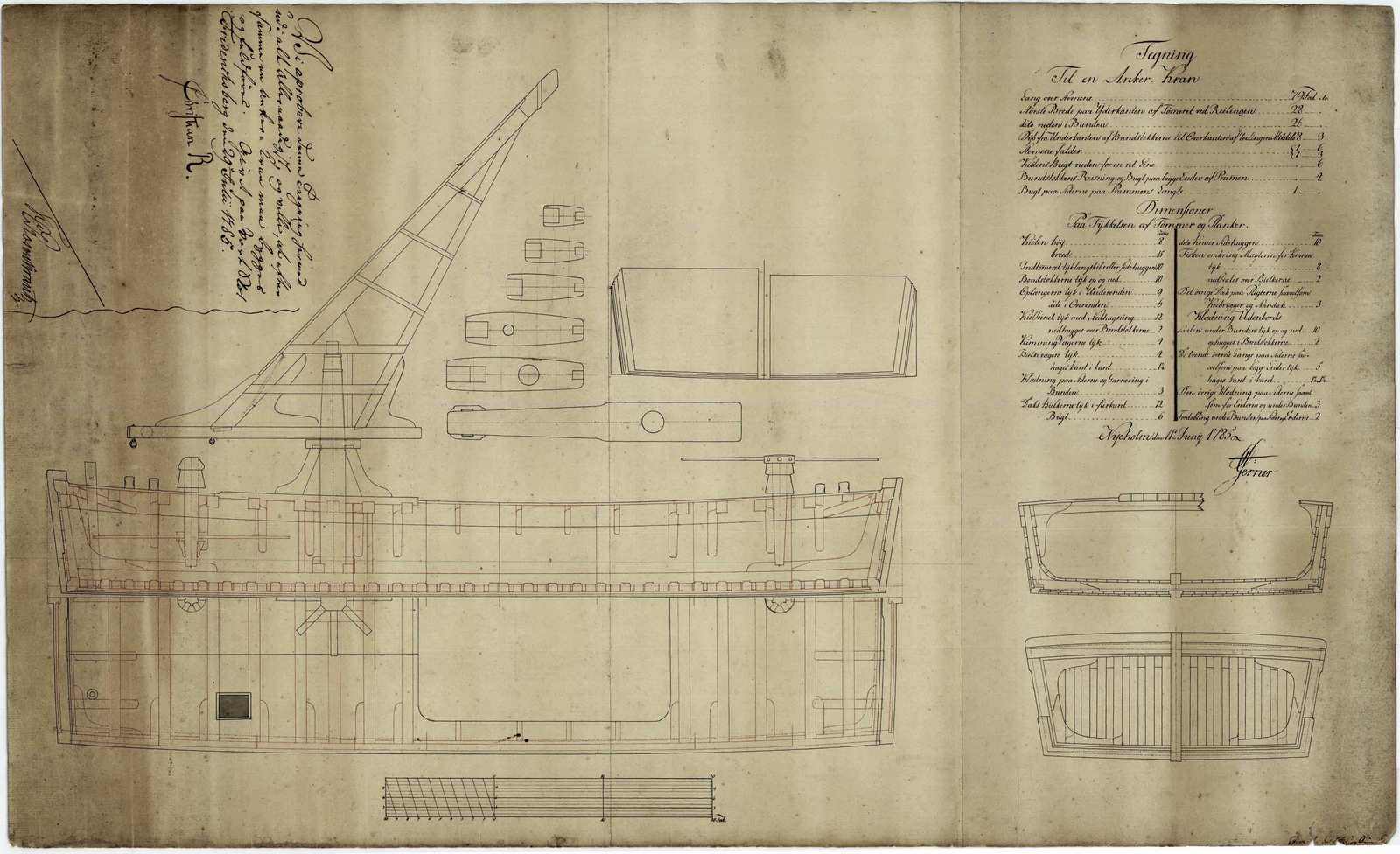 Это конечно плавучий кран, но может и на берегу аналог стоял. Чертёж датирован 1785 годом. Может подойдёт тебе?