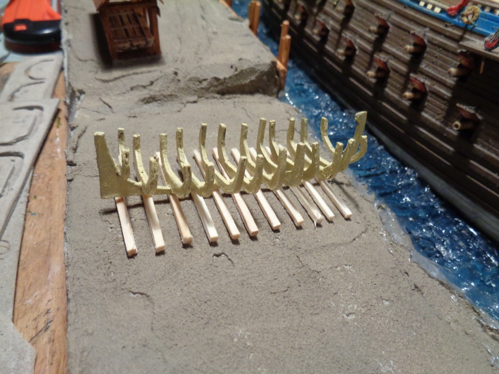 Чтобы скелетику было удобнее стоять на бережку, подпер его подпорками ( а вы думали чем?).