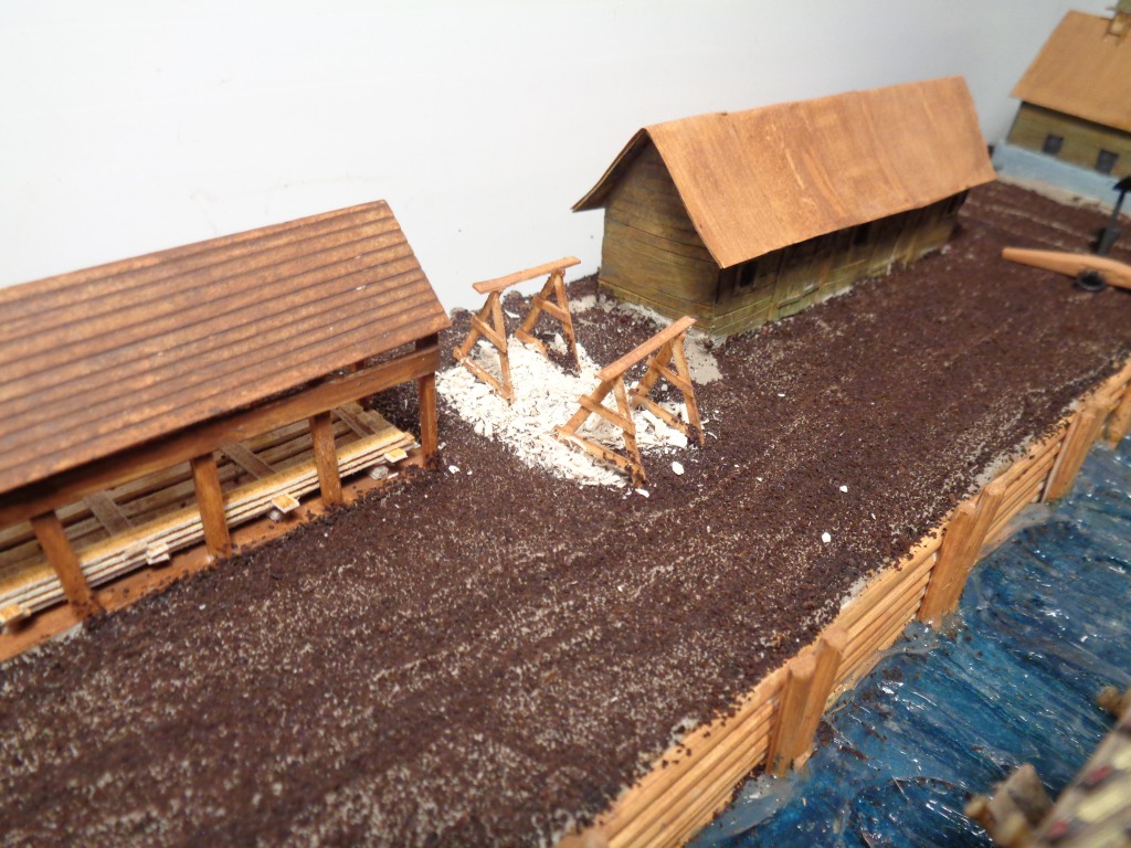 опилок подброшу. Все хочу каких-то кривых палочек-бревнышек ( ну типа стволы на распиловку) набросать, а с палкой сильно не погуляешь. Надо в парк идти - подходящие веточки искать.
