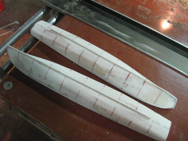 Корпуса: все как один из пенопласта ПХВ/старые,еще российские запасы/.Отработанная технология-режется по трем-четырем шаблонам и доводятся шкуркой.Ну,теперь смотреть.