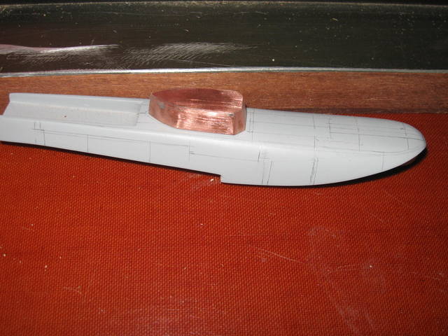 Первые картинки-чистая резка из пенопласта.Сначала обрезаем загатовку по шаблону вид сбоку,затем сверху,затем шаблон скулы,резать поаккуратнее,не надо торопиться.Резануть лишка просто,тяжелее потом выравнивать.Последняя обработка только шкуркой.Натянутой на брусочки,разных номеров,наклеенных на цилиндры и полуцилиндры.Когда вы видите,что это похоже на ваш чертеж-берете в руки кисточку и хорошо/!!!/ покрываете водоэмульсионкой.Цвет неважен,но белая хороша для дальнейшей работы.