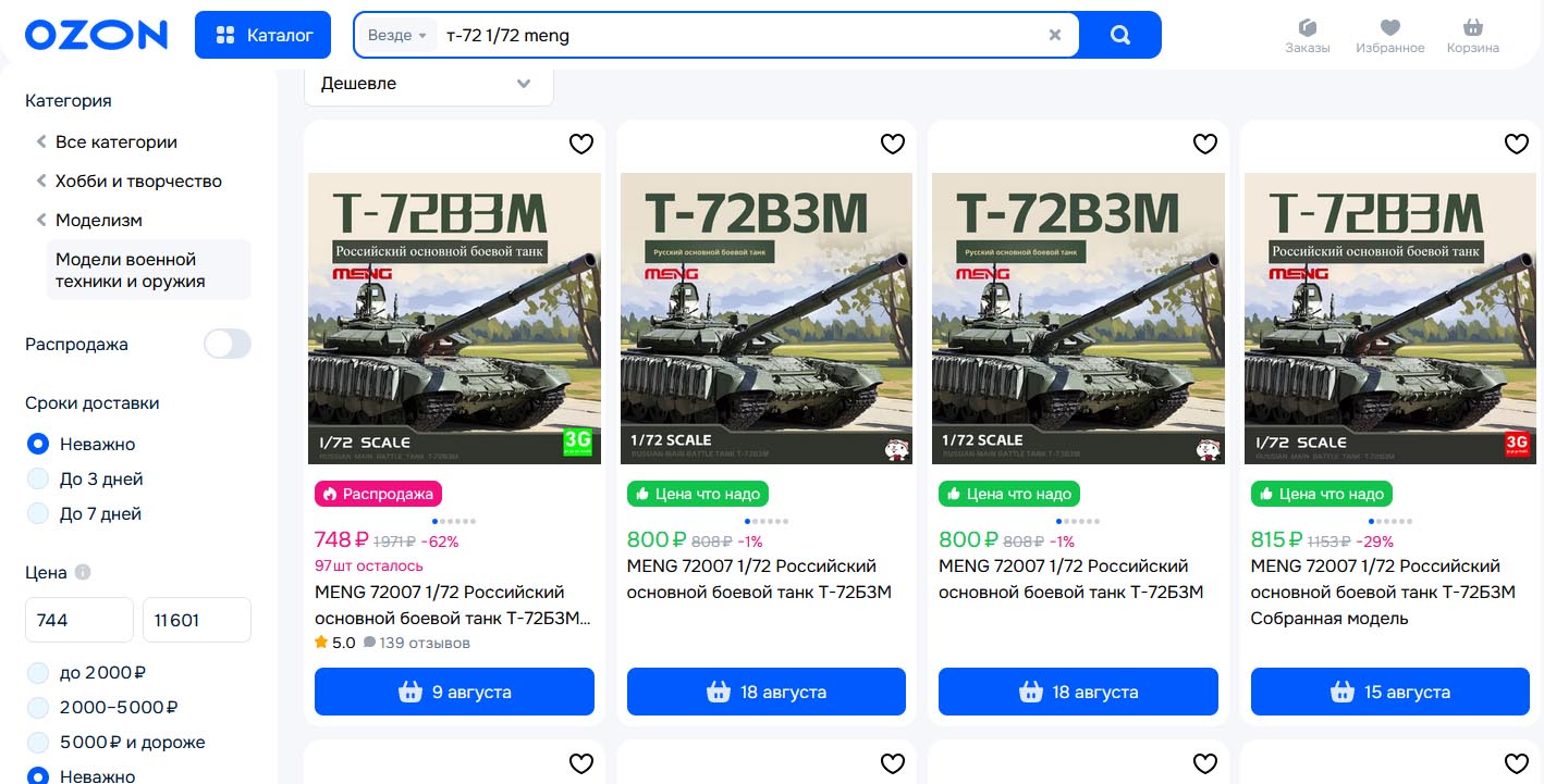 все у вас просто, китайцы хорошие, а у нас все плохие, бедных моделистов Абдирають...дабы не разводить дискуссию:китайцам оплачивает доставку их государство,таможить ненадо,тк продают по одной модели(2 уже доставка не возможна)после продажи, озон месяц не отдает средства, хочешь сразу забрать, забери,но значительно меньше...с системой скидок тоже не все понятно, посмотрим что будет дальше)российский продавец, должен найти способ оплатить импортный товар,а это к стоимости +10-15%,оплатить доставку, и бонусом, расстаможить, заплатить налоги, эксплуатационные расходы,и нужна еще какая никакая прибыль...принцип захода на рынок один: демпенгуй, а как конкуренты обанкротятся, банкуй и собирай в разы большую прибыль...