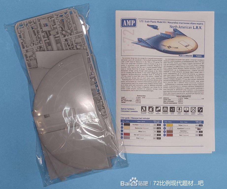 Для любителей космической техники AMP показали состав набора модели проекта американского атомного орбитального боевого аппарата North American Lenticular Reentry Vehicle (L.R.V.) в 72 масштабе.