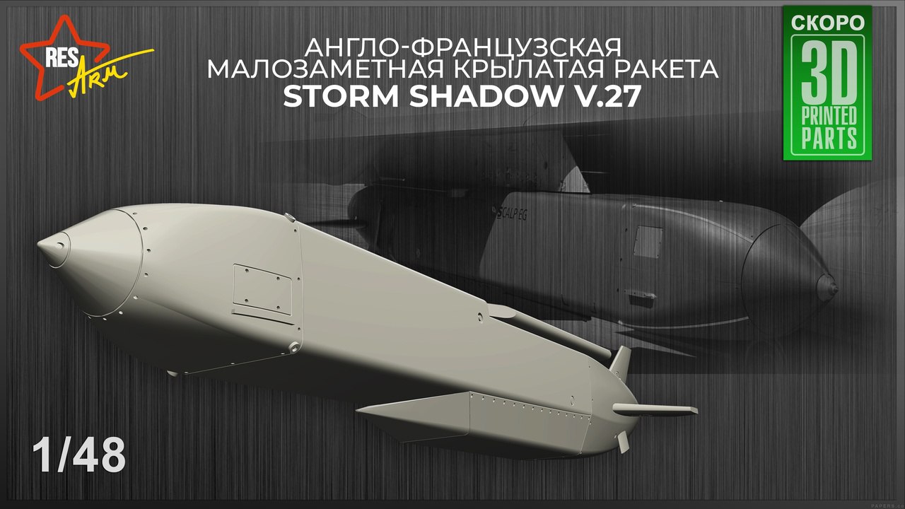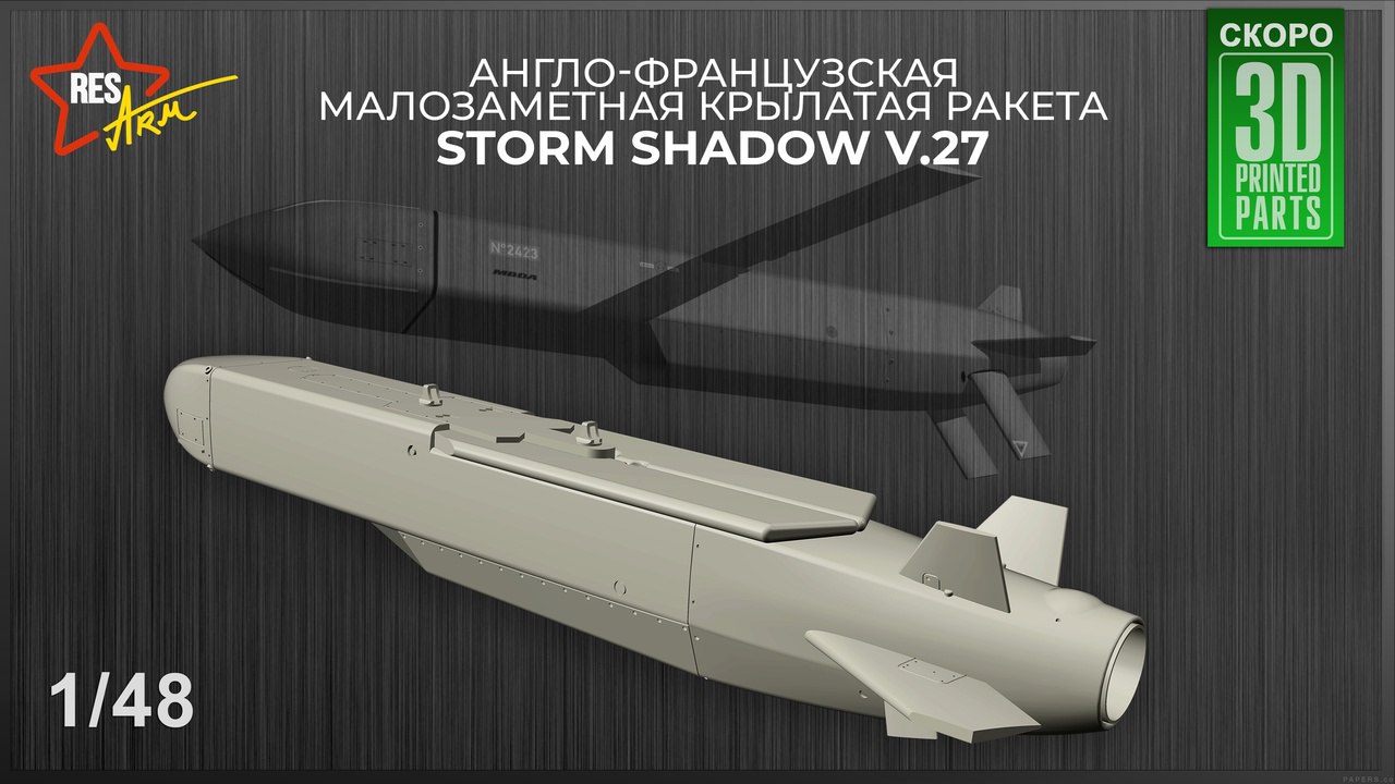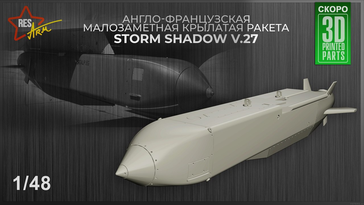 RESArm анонсировали модель англо-французской малозаметной крылатой ракеты большой дальности воздушного базирования «Storm Shadow v.27» в 1/48 масштабе.
