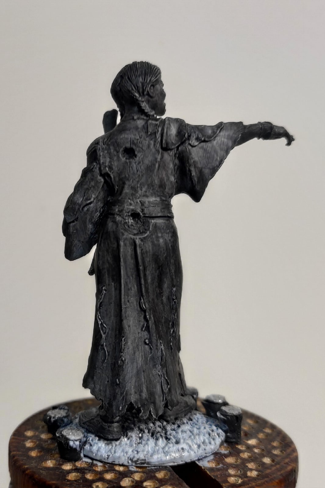 Поверх серого грунта нанес тамиевский черный акрил разбавленный спиртом чтоб слой был потоньше и высыхал быстрей.Черный для приглушения яркости краски на этот раз в дело пошла валеха,а она сама по себе яркая.