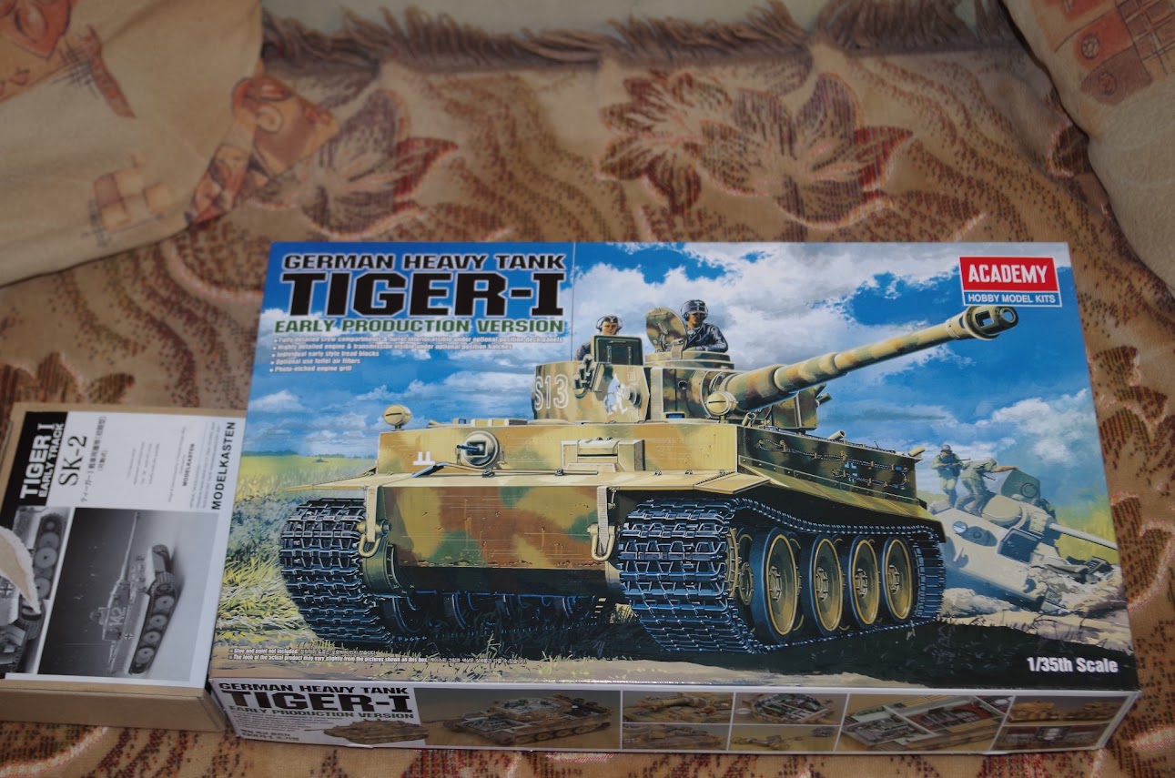 Вот что на данный момент имею: сама модель Academy Tiger Early (1348) 1/35 и наборные гусеницы Modelkasten SK-2.