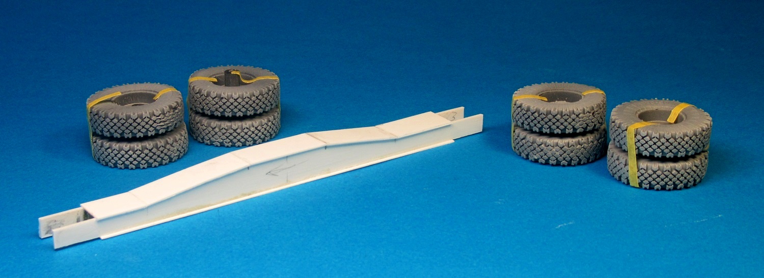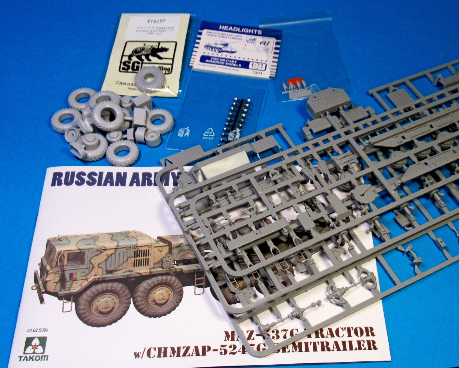 Донором для данного проекта будет модель фирмы Таком: применю детали рамы и ходовой. Всё это прислал мне друг и будущий владелец модели. Также в посылке были комплект колёс и нужные мелочи. Всё остальное, включая кабину, сделаю сам.