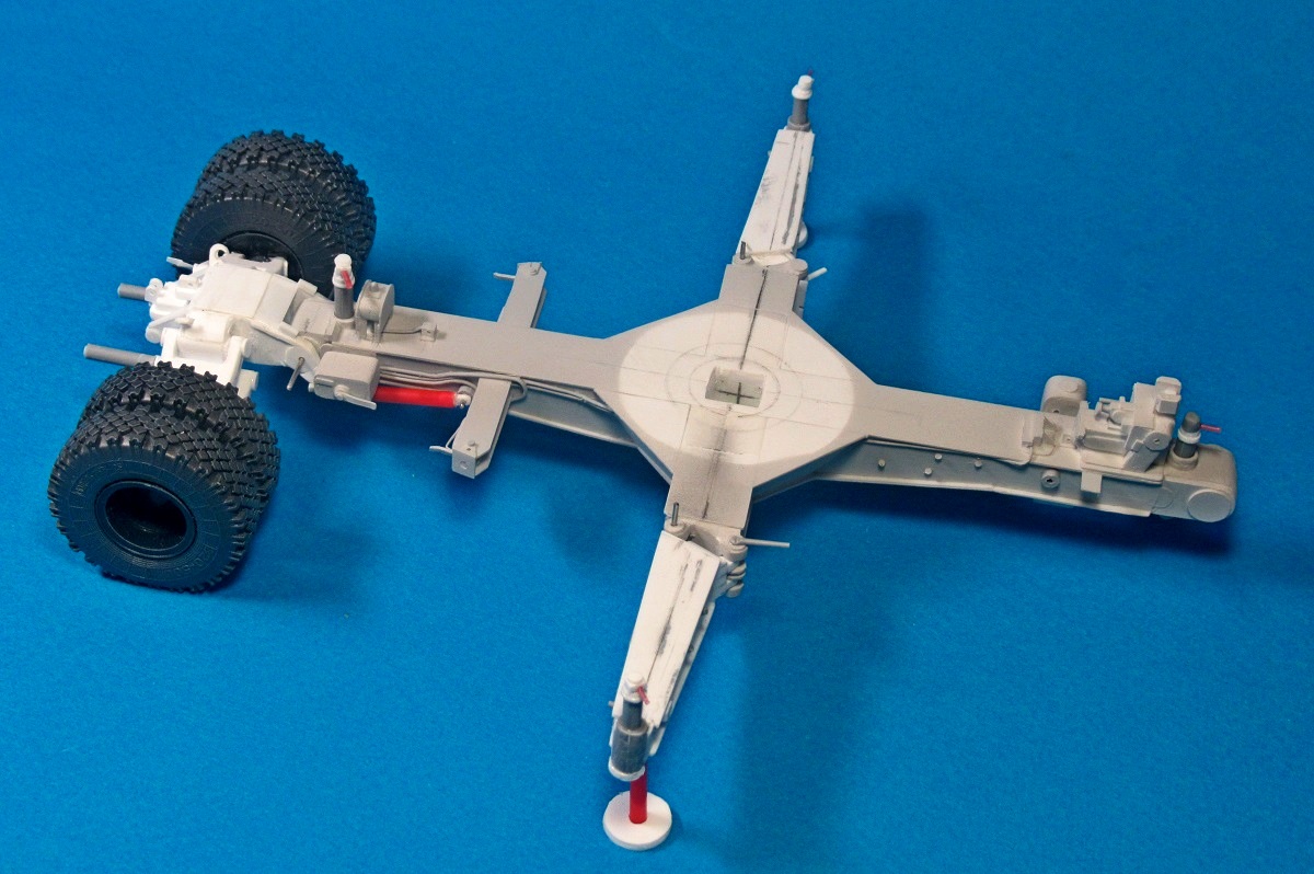 Закончил основные работы с задним узлом шасси. Дам хорошо просохнуть и доведу до ума места крепления колёсных пар. Также добавлю деталей и можно будет приступить к переднему узлу шасси.