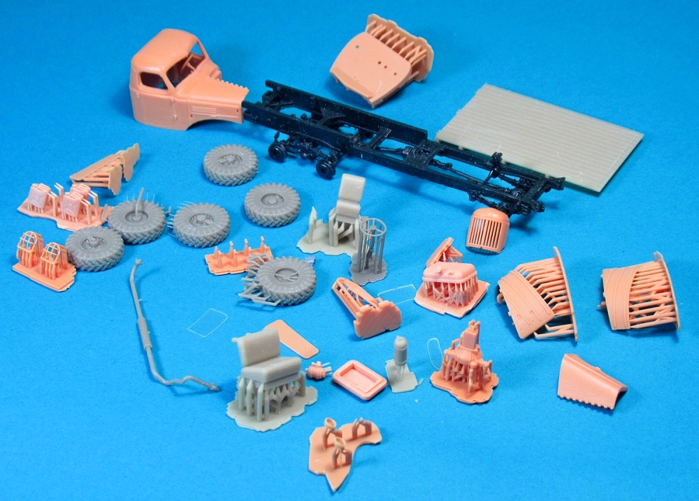 Для этого проекта я использую комплект КамАЗ-53501 фирмы SnakeModel. Сначала конверсирую его в КамАЗ-6350 путём удлинения рамы и укорачивания кабины, а затем запилю спец.оборудование.
