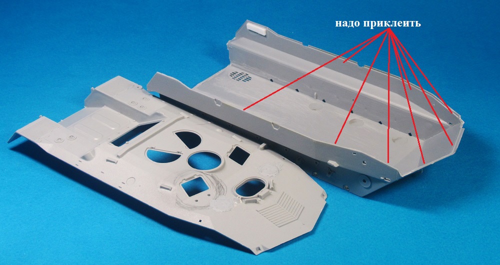 На очереди верхние плоскости. Пока верхнюю часть по месту не клею, сначала надо установить сетки МТО и смотровые приборы.