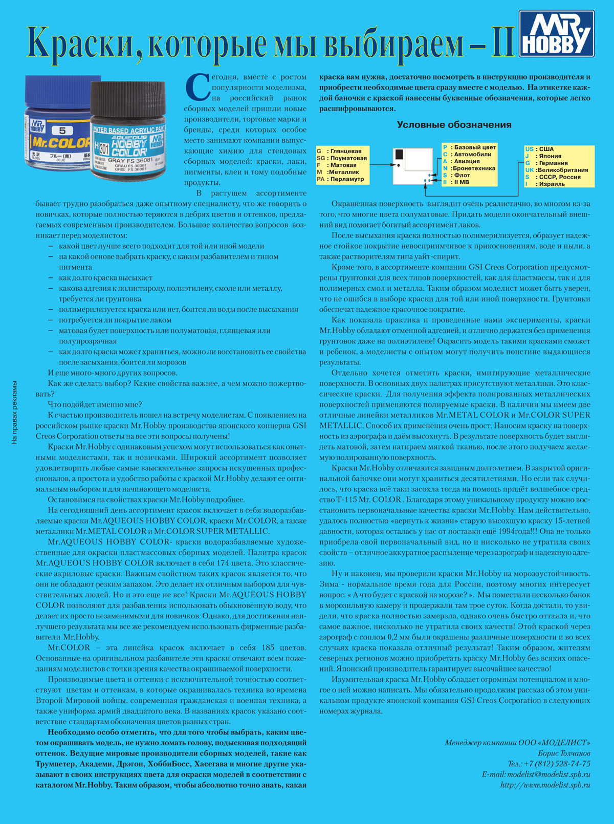 И ещё, если уж закупаться гюнзой... Где-то читал, что их серия Mr.Color, заявленная как нитрокраски, на самом деле: цитирую "является не совсем нитрокраской, скорее это так называемый «акрил на растворителе», т.е. технология акриловой краски, а основа — обычный растворитель". Что скажете?