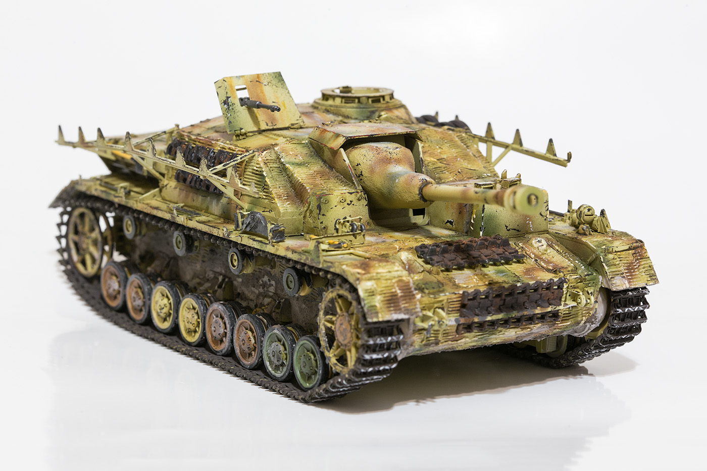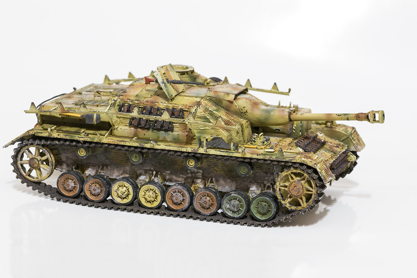 еще бы тогда и пулемет зашоркать так сказать и катки уж точно поободрались, хороший штуг получается очень понравился.