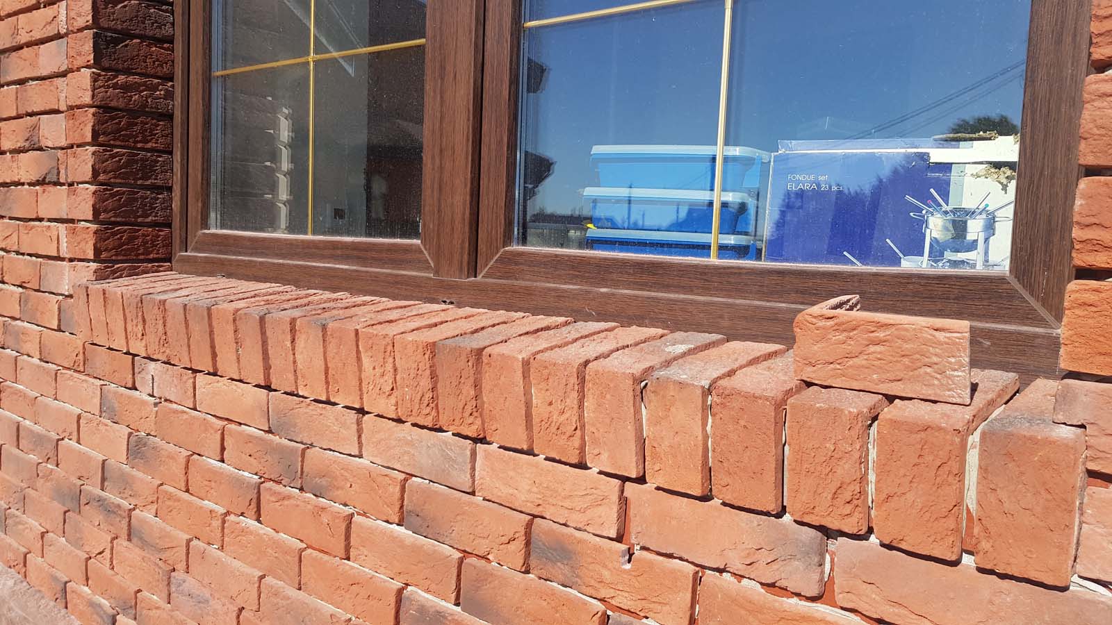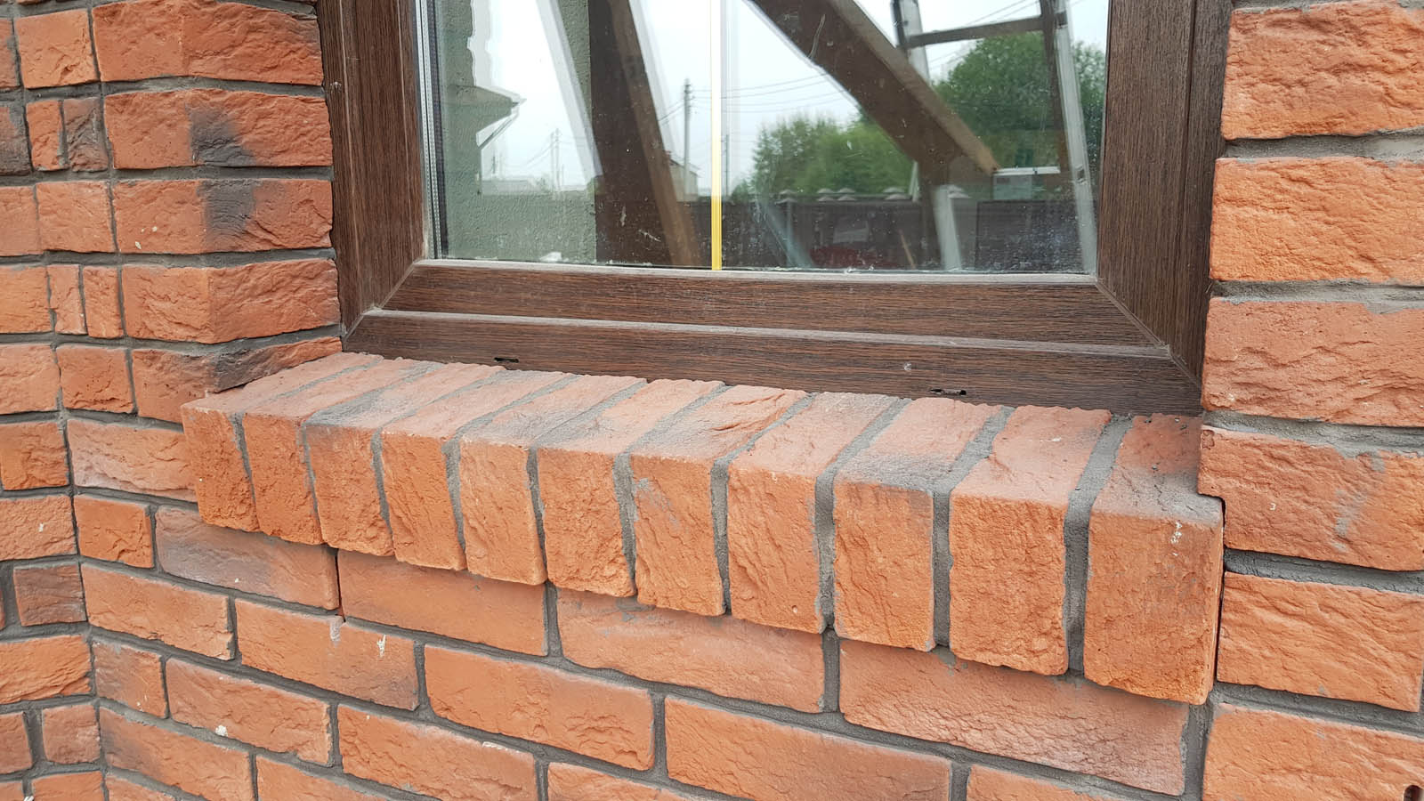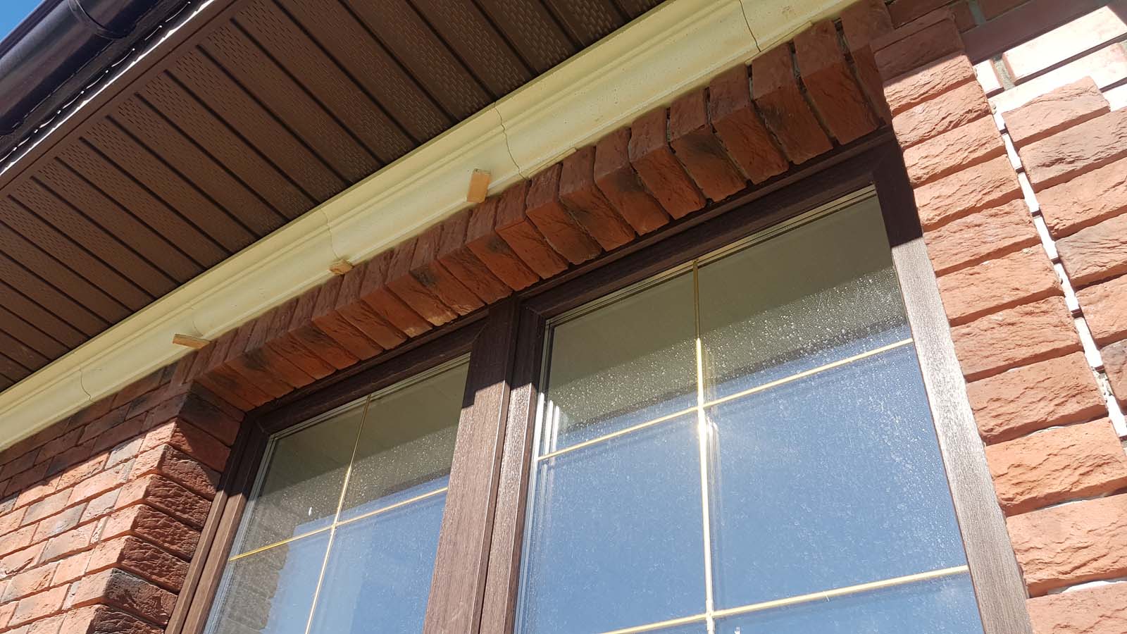 Затирка швов по всему дому завершена. Вот как выглядят перемычки над окнами и подоконники