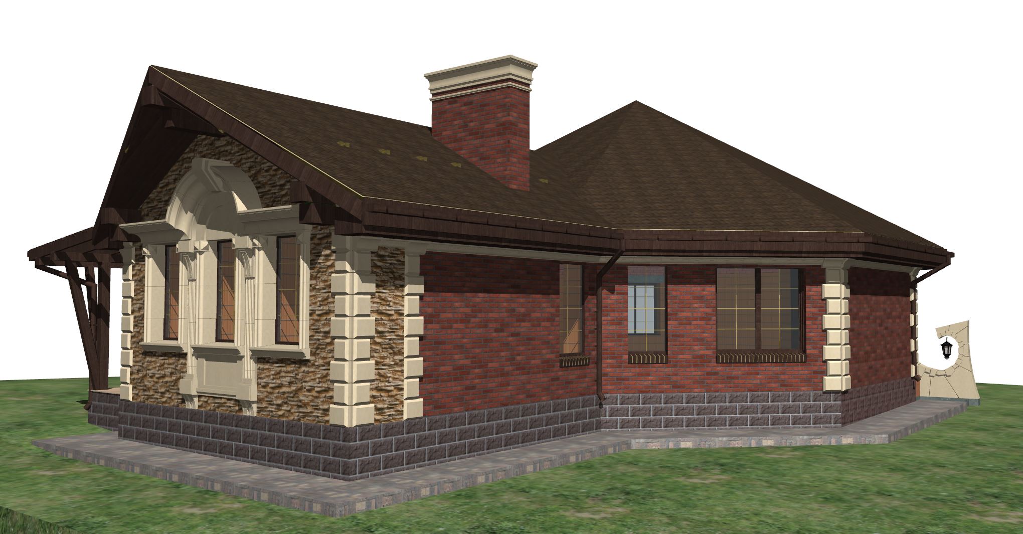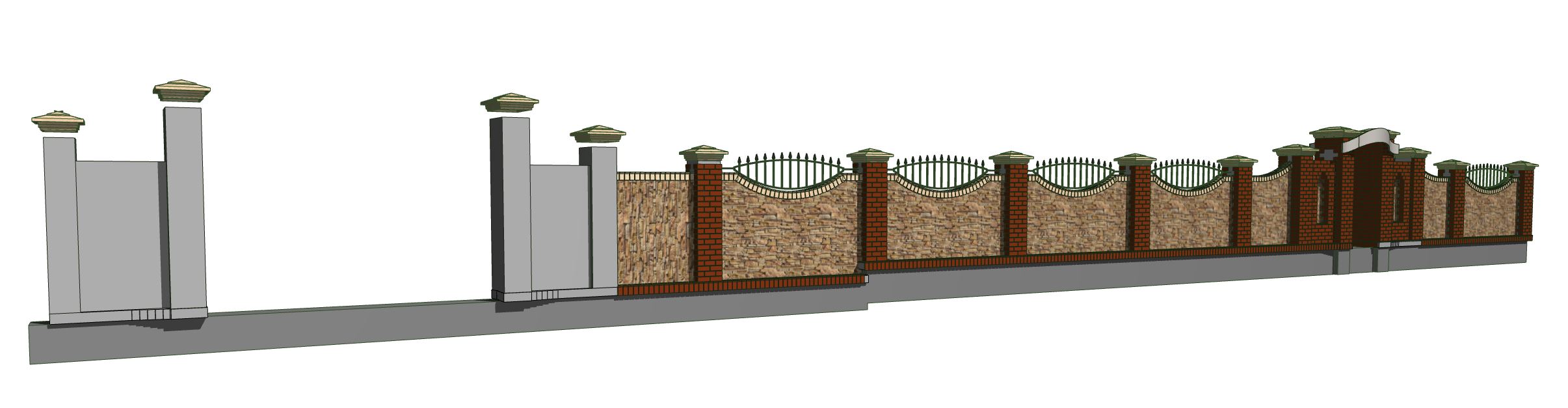 А вот так скоро станет. С забором вышел интересный казус. Сначала я планировал сделать заполнения просто из облицовочного кирпича, но т.к. у него красивая сторона только одна, то чтобы с обеих сторон забора все было красиво пришлось бы вести кладку в 2 слоя, т.е. толщина экранов стала бы 250 мм. Если же сделать все из чернового кирпича толщиной 120 мм и облицевать плиткой я смогу сделать любую фактуру и цвет. Посчитав стоимость материалов и работы оказалось, что второй вариант дешевле!! Т.е. за меньшие деньги я получаю большую красоту
