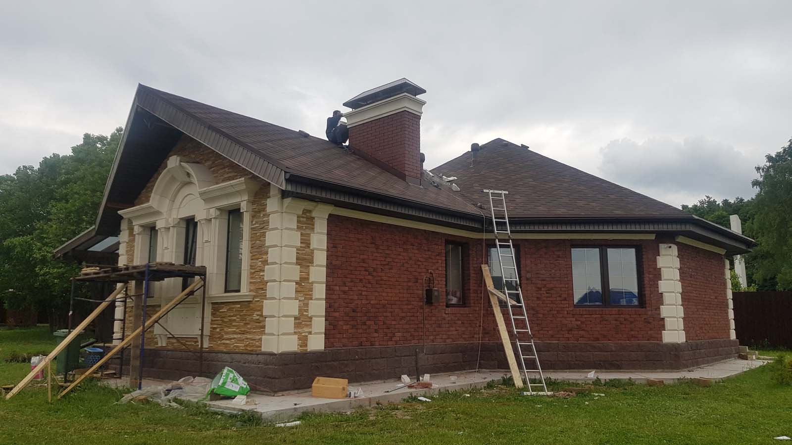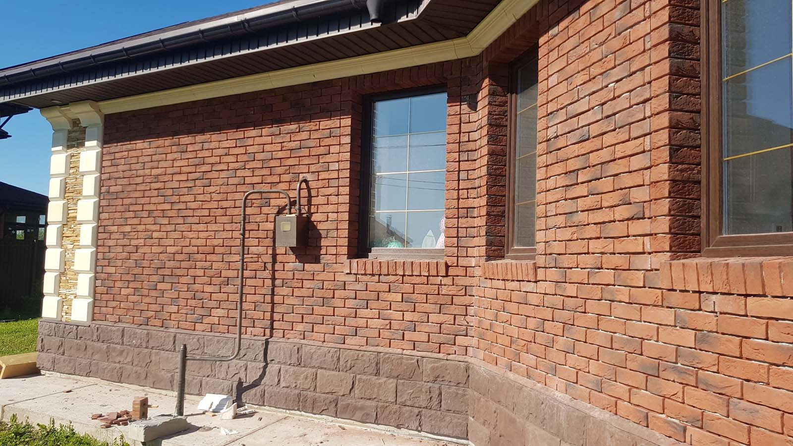 Всем привет. Облицовка дома почти подошла к концу, так что отчитаюсь. Ставили мы ставили декоры и тут смотрю я и понимаю, что мой облицовочный кирпич Браер Бордо как то не смотрится с ними. Уж больно простой, да еще и высолы в конец достали. С партией мне не повезло и известь выстреливает точками по всей поверхности. Короче решил я переоблицевать свою облицовку плиткой под кирпич ручной работы (да, архитекторы - люди сильно своеобразные). Вот результат в сравнении