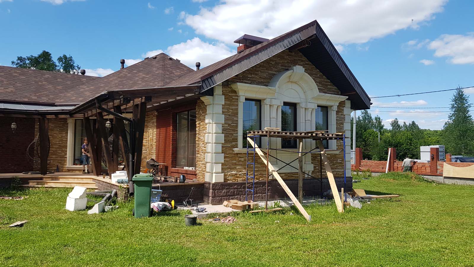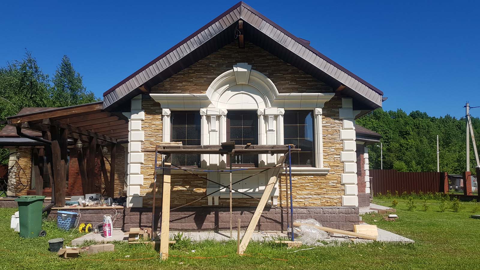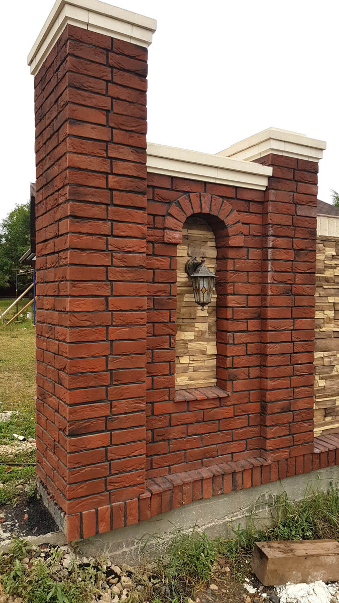 Кладка всего декора ведется на клей Ардекс CG-700. Клей очень хорошо себя зарекомендовал при различных моих тестах. Самое интересное, что отлично держится даже на металле. По сложности сбивания его с облицовочной кладки ощущения сравнимы с отбиванием бетона