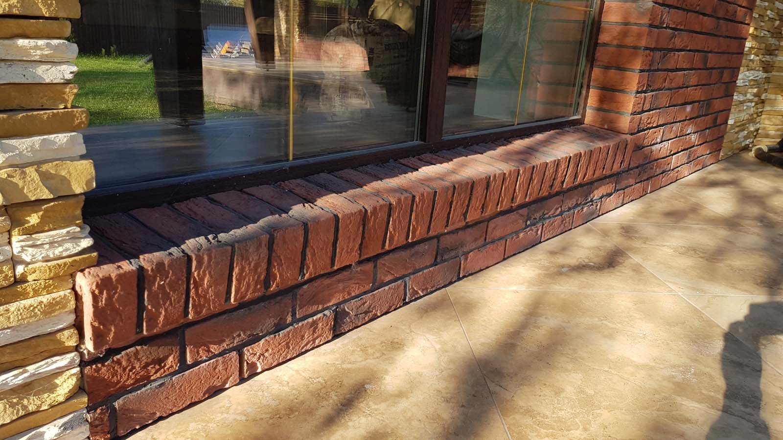 И поехали по всем стенам. Тут отлично видно, что первые 3 ряда облицовочного кирпича греются теплым полом. Также, видим мостики холода по периметру окон. Откосы образованы сплошным кирпичем и теплой керамикой. Общая толщина пирога в этом месте 65 см и все-равно хоть немного, но тепло уходит