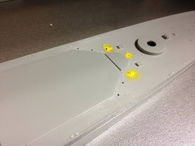 При формировании плоскостей были снесены иллюминаторы. Точнее не иллюминаторы, а козырьки над иллюминаторами(судя по фото иллюминаторы на верхних ярусах надстройки не имели выступающего кольца. С изготовлением козырьков вопроса не возникло (сверло, проволока от патч-корда, нож). А вот с приклеиванием....