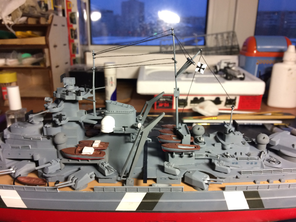 Краны в наборе надо менять они вообще не от бисмарка ,по мне так более качественно был бисмарк моделиста в 350 масштабе ( обе модели держал в руках) и бонус был приятный у него это возможность поставить его на ход