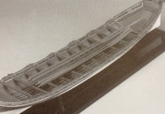 Из музея, 37-фут баркас. И тоже сверху продольная баночка. Середина XVIII
