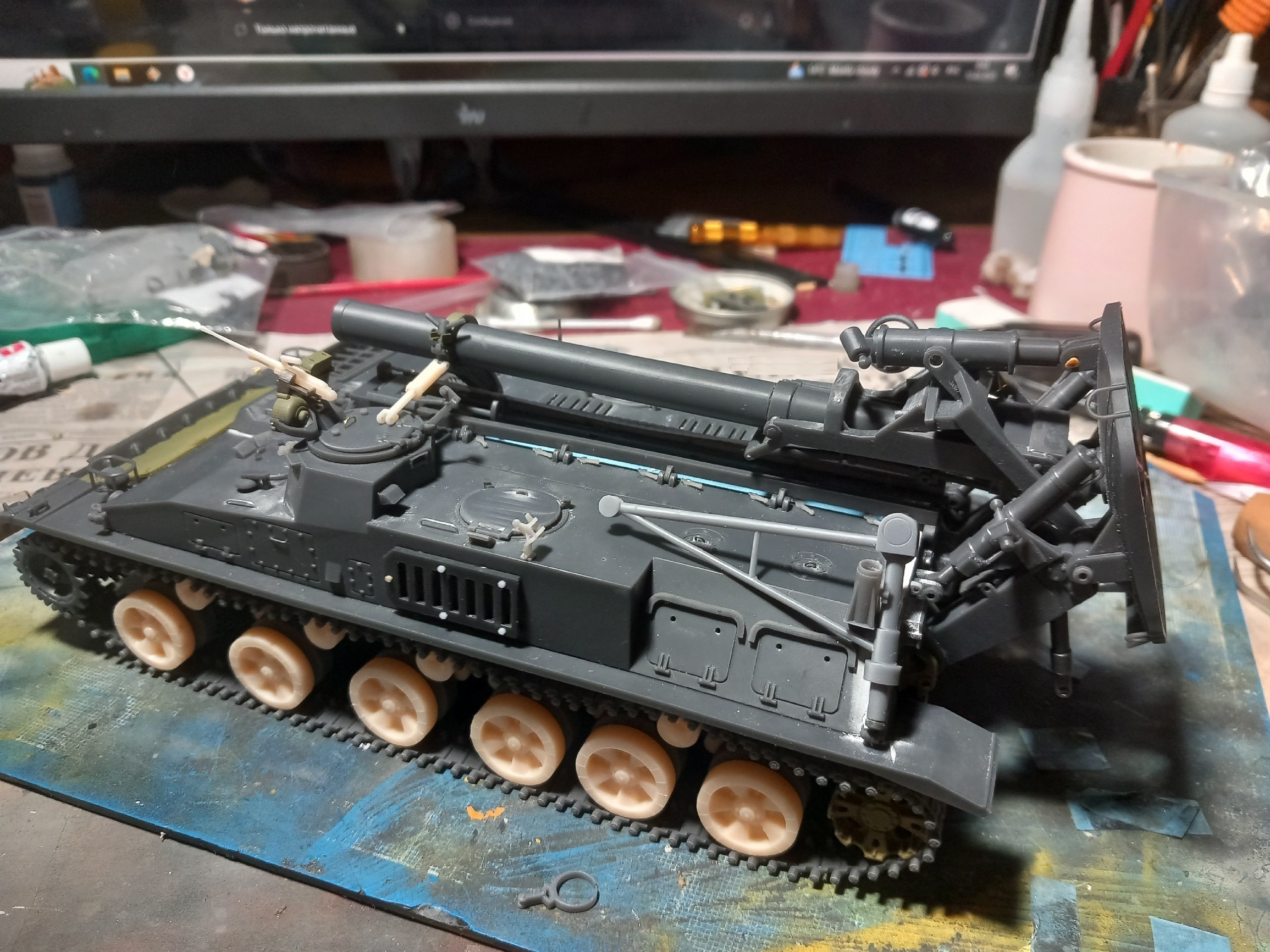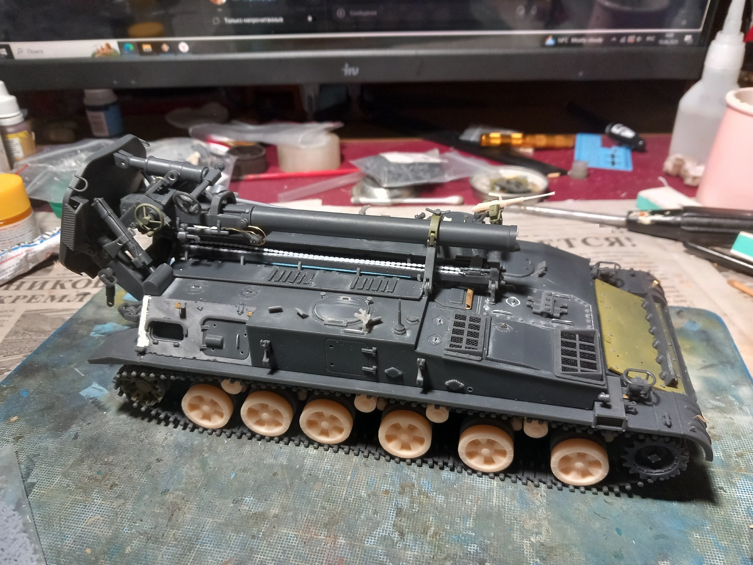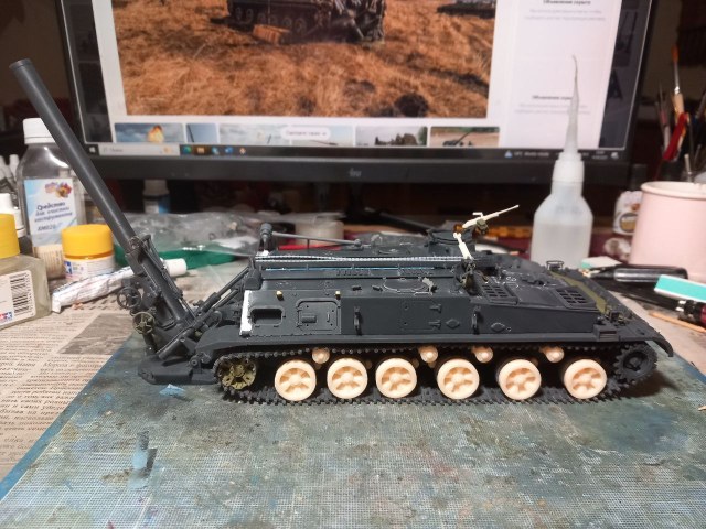Так то у меня еще один есть от него, из первых вариантов. Другой способ членения корпуса. Этот будет в транспортном положении. Тот (темный) в боевом.