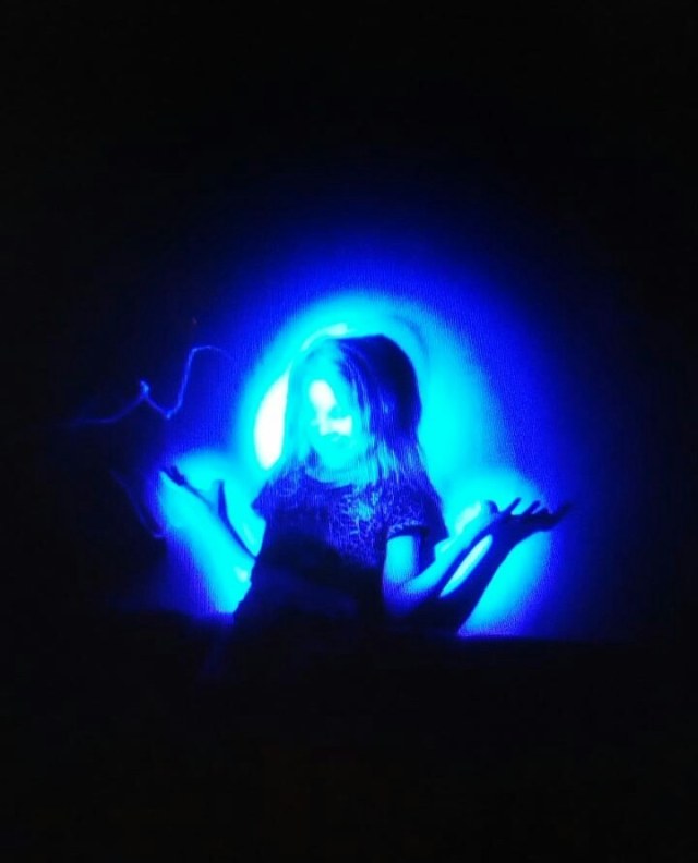 Не хочу вас разочаровать, но это просто брак экспозиции на длинной выдержке. Камера не справилась с условиями, такие фотки есть у любого, кто хотя бы раз фотографировал. Но версия про привидение, несомненно, гораздо волнительней.