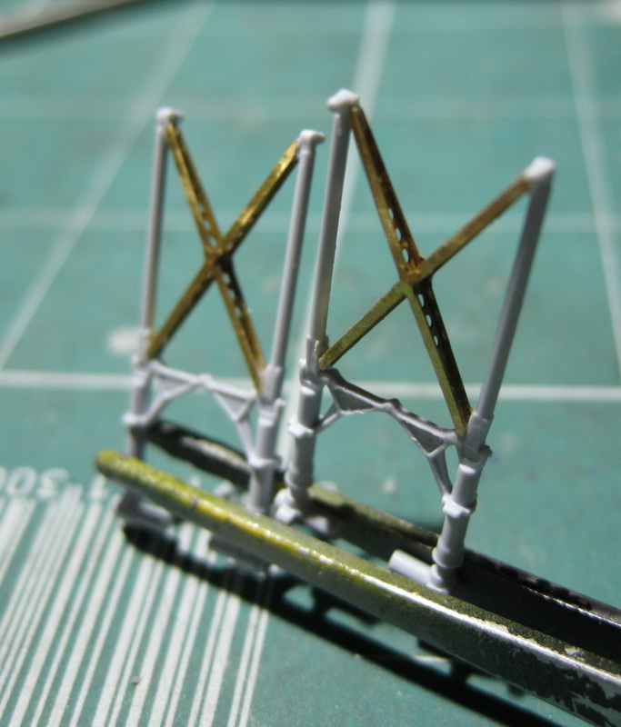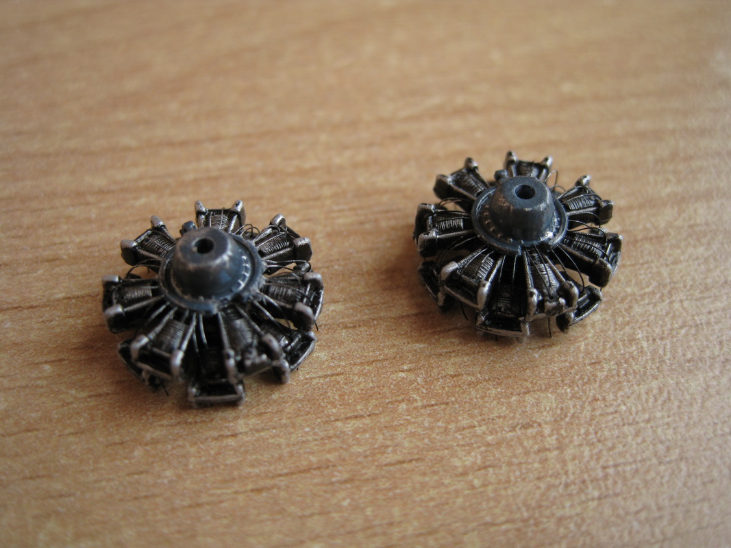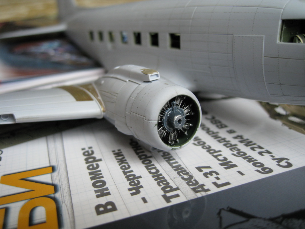 Латунь - это травло,так что мне просто всё собрать аккуратно надо было. Возни много с клёпкой,расшивкой и утяжинами было,как и лишней толщиной пластика местами. С моторами повозился - протянул проводку к свечам,предварительно насверлив отверстий,ну нарезал ножом оребрение цилиндров - Фикс дал их "лысыми".