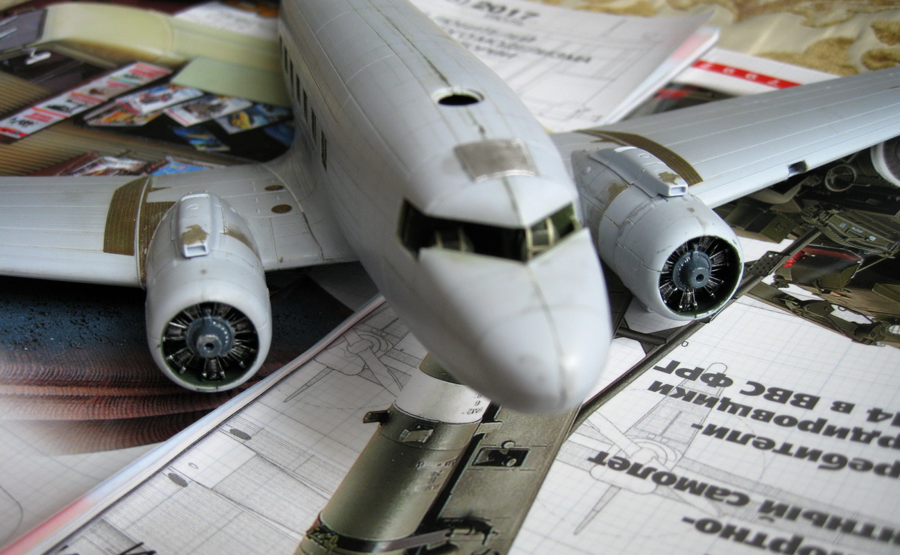 Новая работа - С-47 от Airfix с Биг-набором травления от Эдуарда. К сожалению информации по самолёту мало. Нормальных чертежей нет. Борис помог материалом,скачал несколько валков в сети. Сделал вывод - те чертежи,что есть в ходу исходят от оспреевской книги,а может и раньше откуда. Буду пользоваться чертежами из Мира Авиации, многочисленными фото и ТО на ПС-84 и Ли-2.Сравнение пластика с фото показало наличие отсутствия линий стыка обшивки на фюзеляже и неверное расположение некоторых из них. Для начала расшивкой и займусь. После буду накатывать заклёпочные швы.