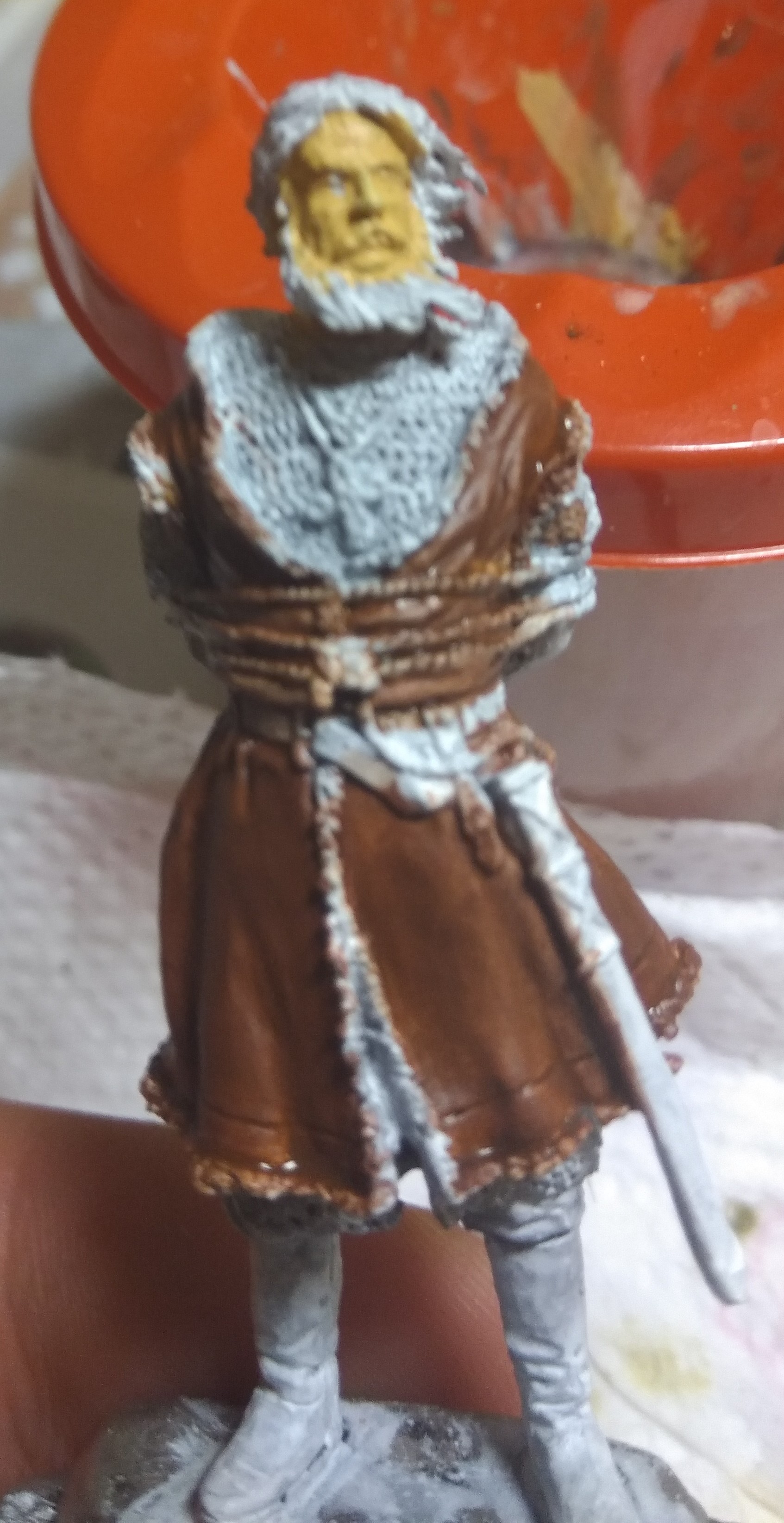 взял композицию "пленный Мстислав" как кошку для тренировки, фигурки обезжирил, монгол загрунтованную темным, Мстислав белым грунтом(художественный разбавленный)