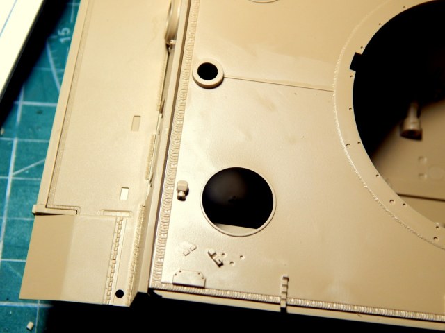 Вот например шов между нижней и горизонтальной лобовыми листами выглядит вообще странно, плюс слишком широкий.