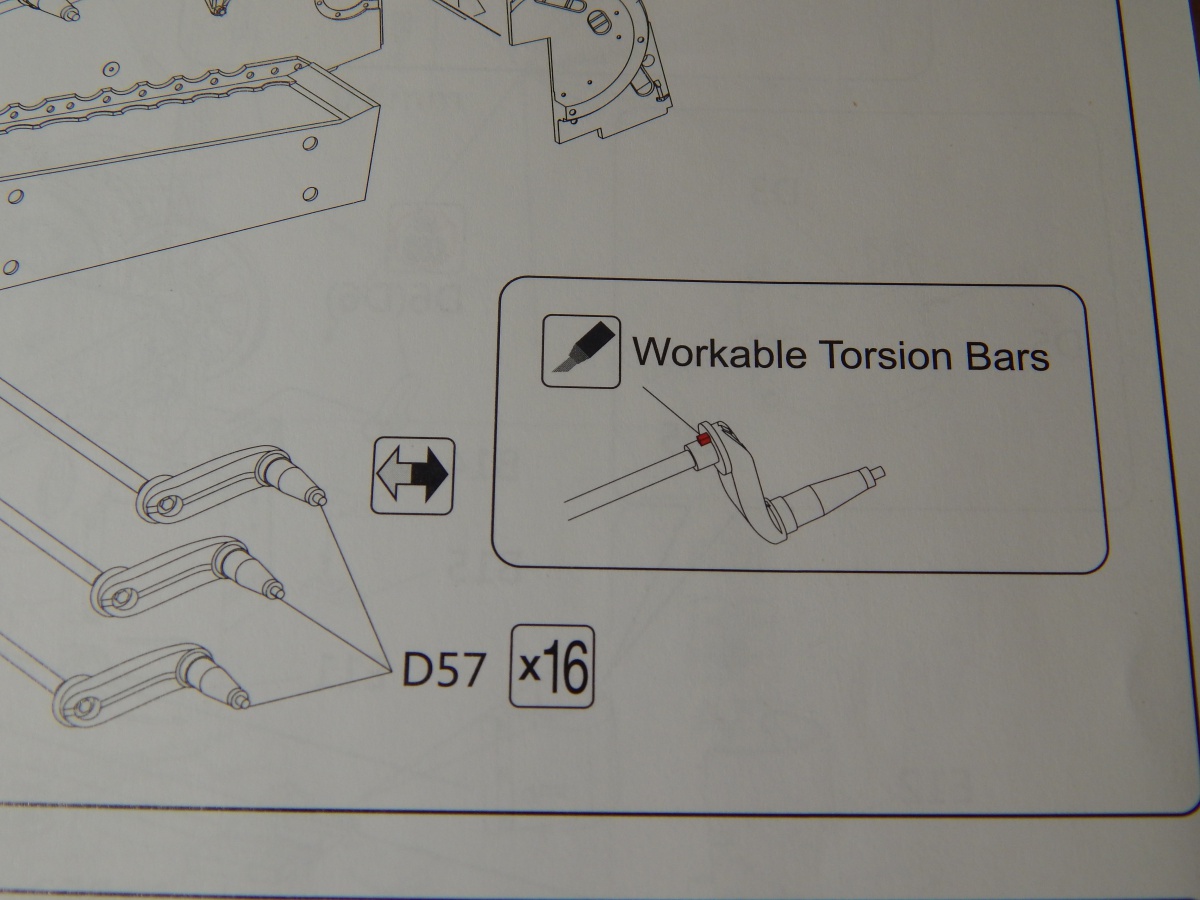 Если торсионы сделаны по принципу AFV-Clubовского Тигра - то они будут упираться в ограничители. Эффект рабочего торсиона будет виден, когда колесо не опирается на твердую поверхность, а "проваливается" в ямку.
