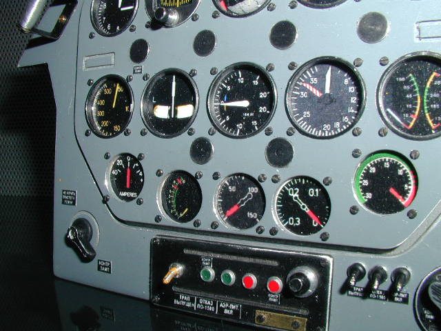 Здесь доска чёрная. Где-то читал,что приборная доска МиГ-а имела дополнительный дюралевый щиток,который часто отрывали на сувениры или ещё для каких целей немцы. И тогда доска казалась серого цвета. Хотя у того же Ил-2 начала войны прибоки были серыми.