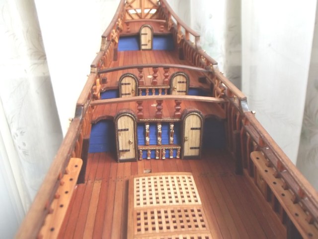 Помощница занялась декором и вооружением кормы. Зачем Густаву Адольфу понадобилось столько вооружения на транце? От кого отстреливаться? Неужели двух ретирадных орудий было мало?