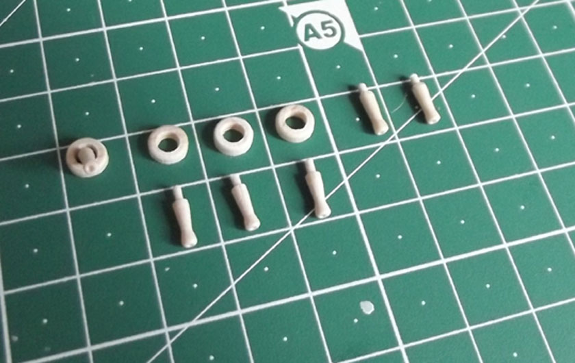 There are more than 700 individual sculpted elements on the ship, but the tooling cost for a metal casting is about 1000 euros for each "hole" in the mould. What is peculiar is that the cost does not change very much with the size of the casting. We could thus reduce tooling costs (and resultant kit cost) by combining adjacent sculptures into single castings. We also had to decide where to use duplicates. There are a zillion little Roman warriors all over the stern, each one an individual carving, but at 1:65 the differences would not really be visible, so it was possible to use a single mould for large numbers of them. The goal was to get the number of moulds down below 100, ideally closer to 80, and we managed this by some clever engineering and careful evaluation of every sculpture on the ship. It was a fun day of discussion!