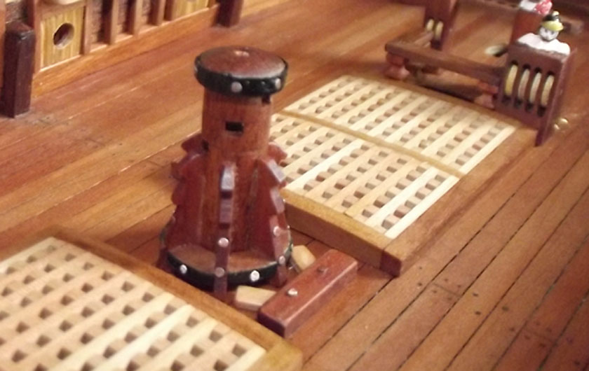 я ставил под углом и к палубе и к линии соотв.мачты,если так можно выразится...если его(их) ставить вертикально к плоскости палубы...то получается талрепы талей (от гардель блока к кнехту) проходят к шкивам кнехтов на излом... я ориентировался на то,как стоят эти кнехты на реплике Duyfken и модели Софии Амалии...так чтоб фалы реев,талрепы талей и кнехт(его наклон) все было на одной линии...?