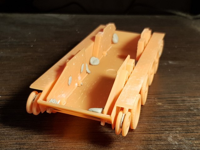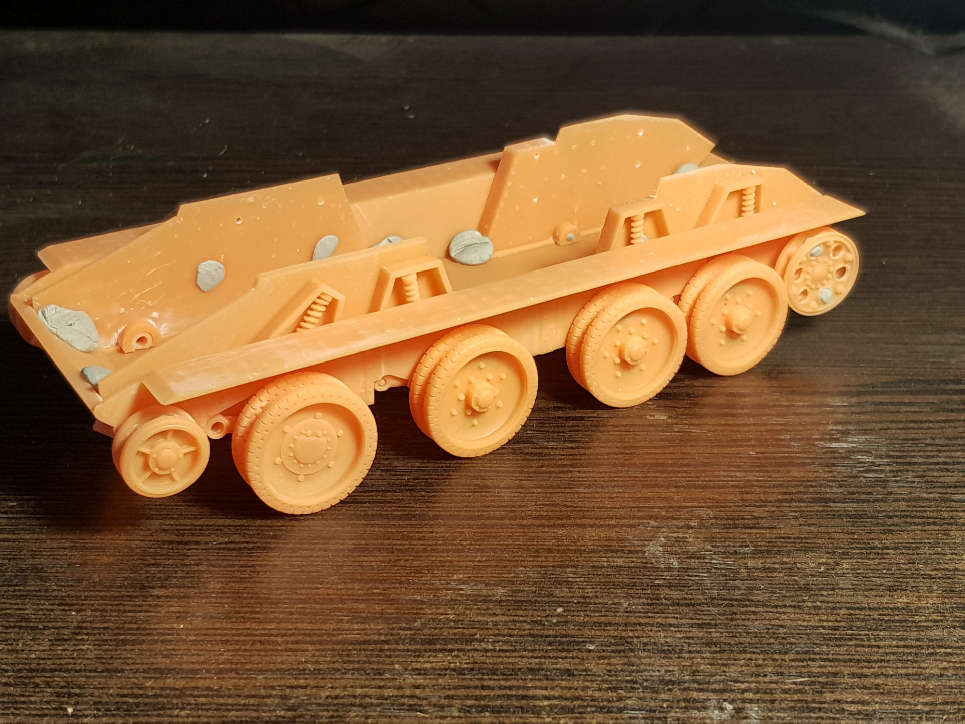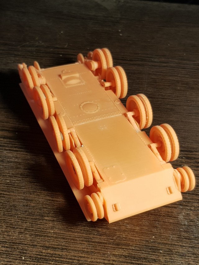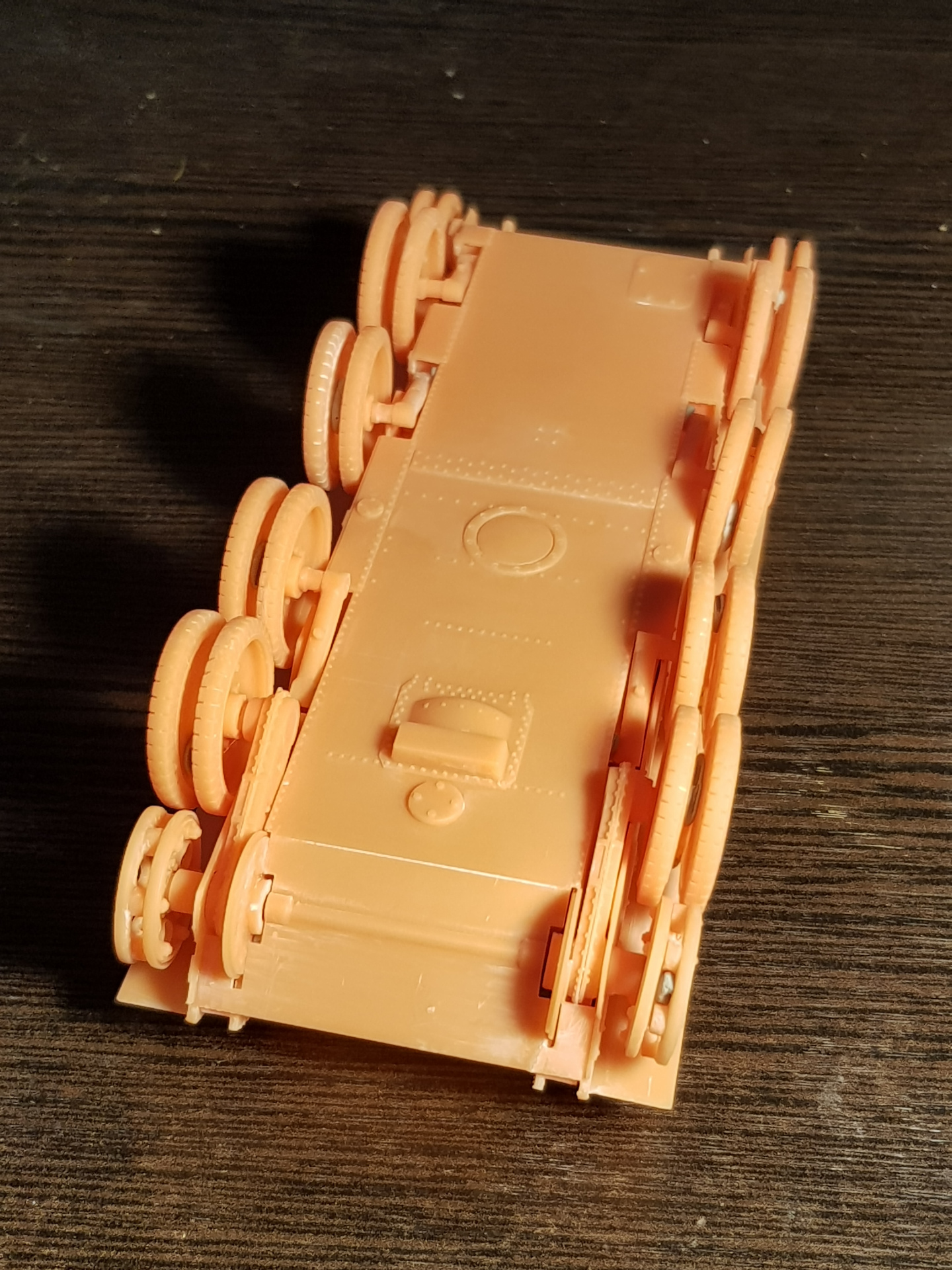 Теперь покраска нижней части корпуса, катков и окончательная сборка ходовой.