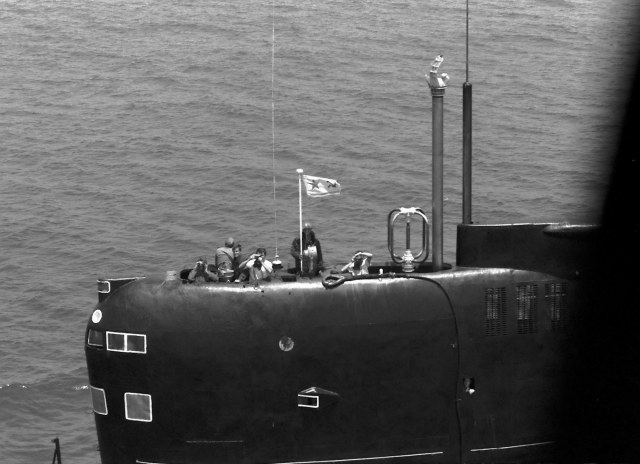Для примера выкладываю фотографию лодки 641 проекта с новым "ходовым" флагом.