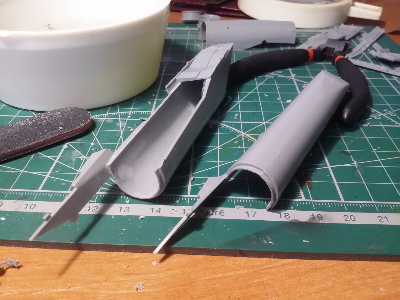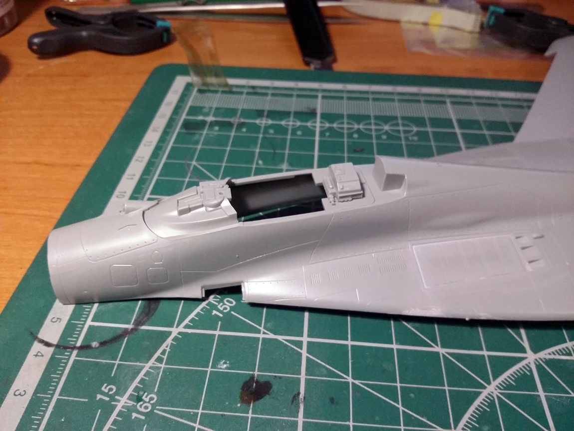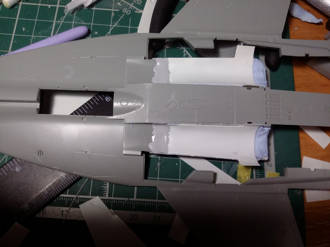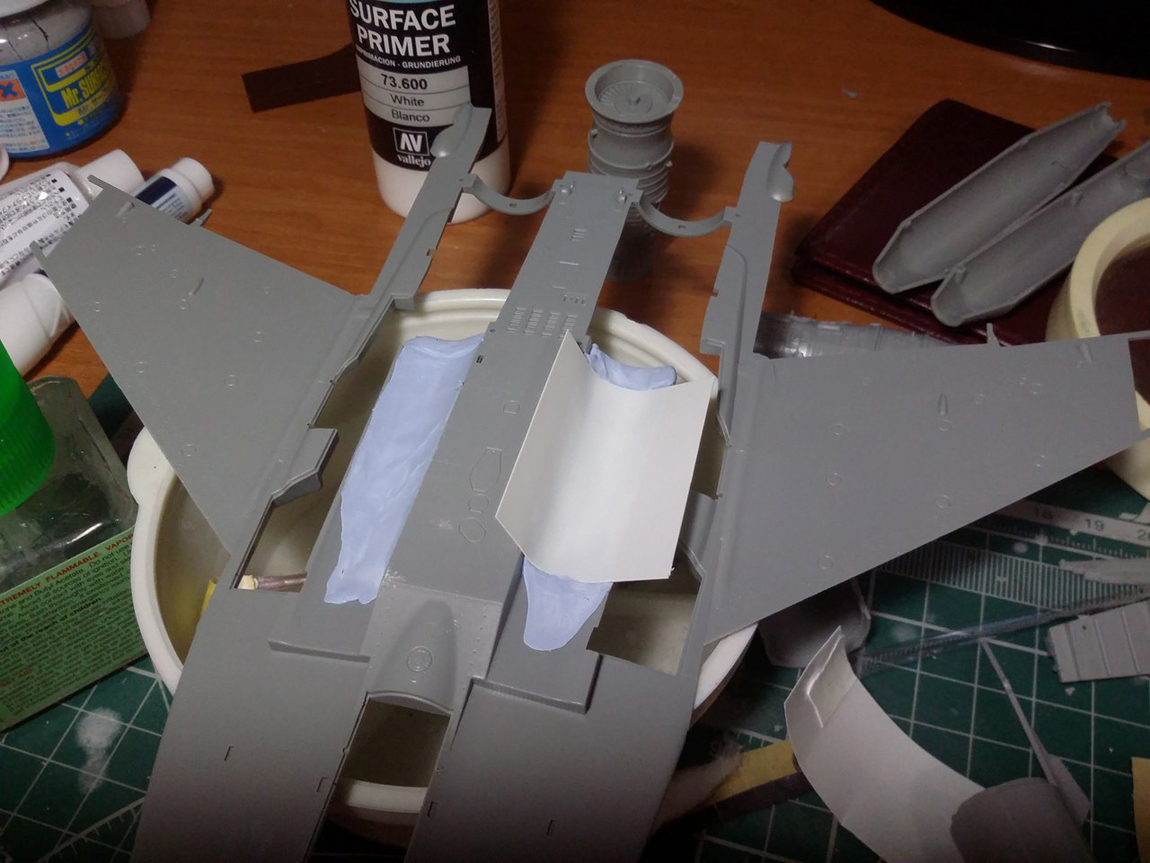 Стройку начал с ВЗ, а именно с попытки исправить канал ВЗ. Если этого не сделать, то между ВЗ и двигателем образуется огромная ступенька. Многие скажут: "зачем заморачиваться, закрой створку осевого входа и не парься".( так многие и делают кстати) Но мы не ищем легких путей, да и створка закрывается только при запуске двигателя и остается закрытой пока двигатель работает на земле и до определенной скорости на разбеге. Поэтому сделаем ее по фэншую открытой.