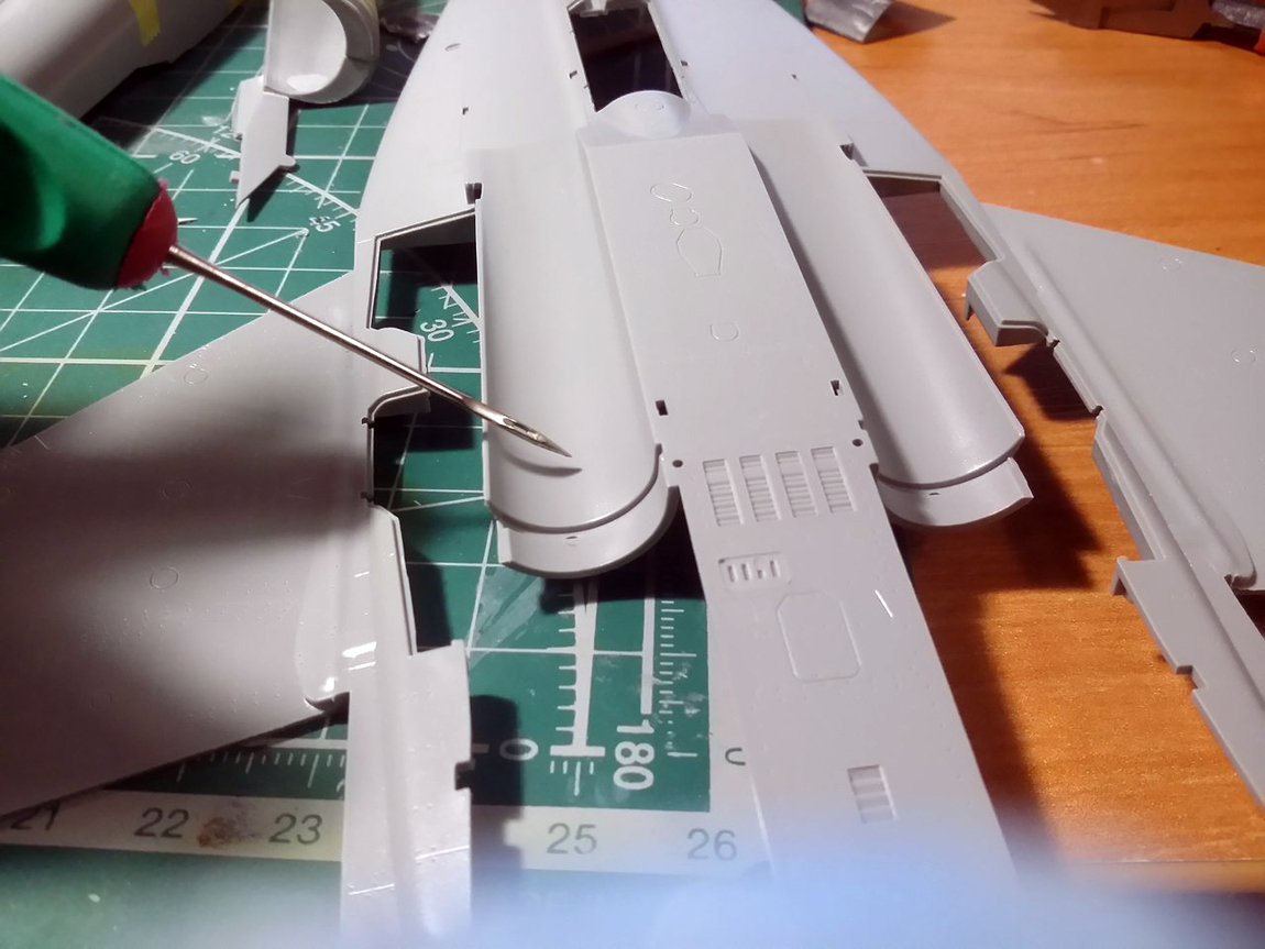 Самые проблемные места это нижние законцовки крыла, там проходит стыковочный шов хитрый который нужно убрать, но не повредив клепку и расшивку это практически не возможно, вроде победил это место. Заново все расклепал и нарезал.