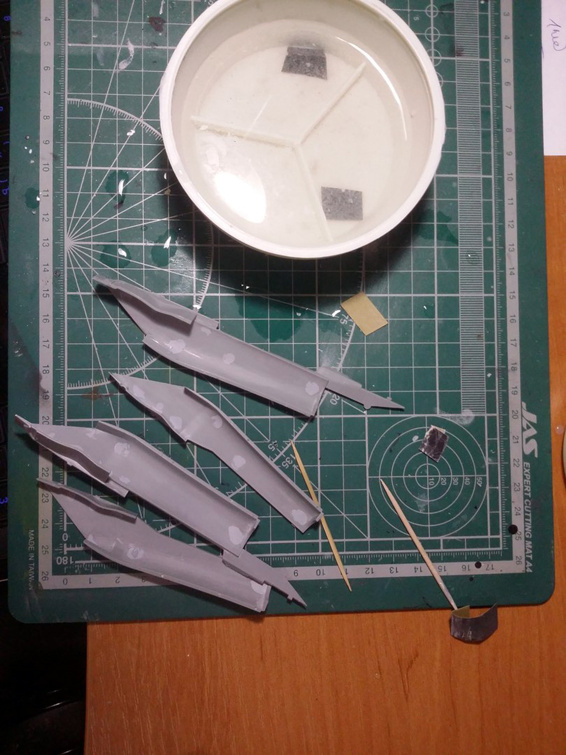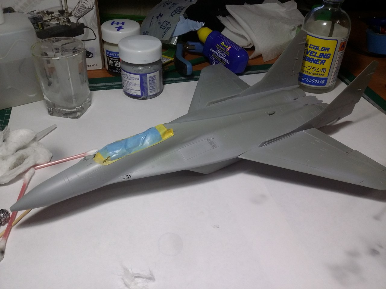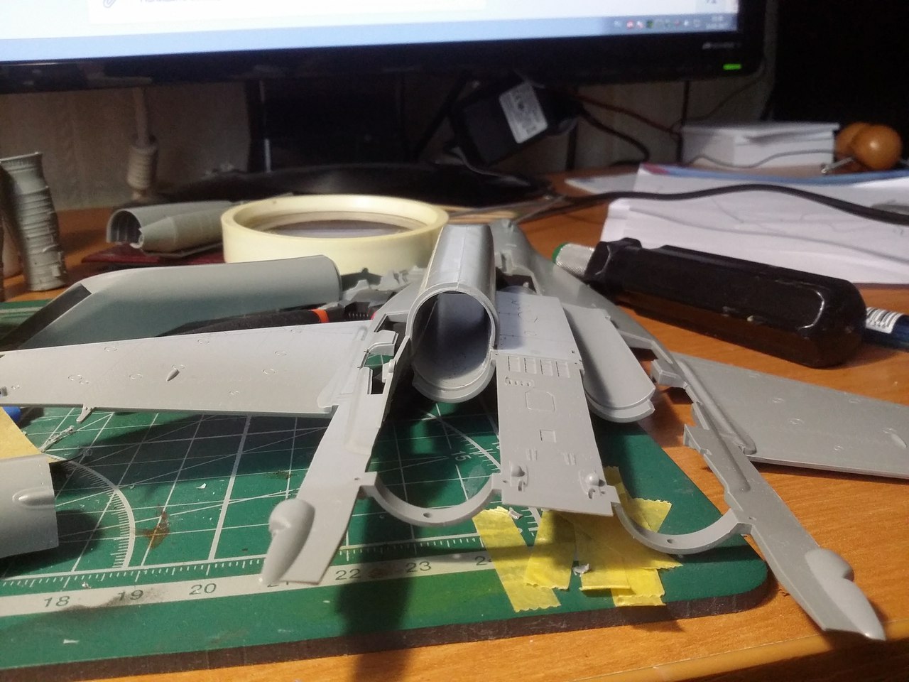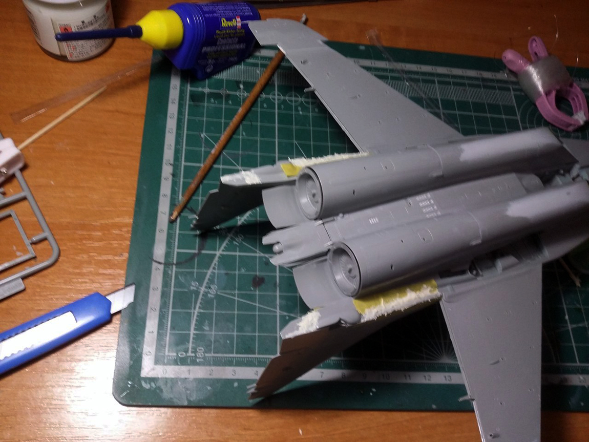 Привет всем, продолжаю стройку. Грунтовать модель не буду полностью, потому что на консолях крыла и килях довольно мелкая не глубокая клепка, очень не хочется ее потерять. Поэтому прошелся грунтом по менее болезненным для расшивки местам, а также по проблемным. Выявилось несколько косяков, будем исправлять.