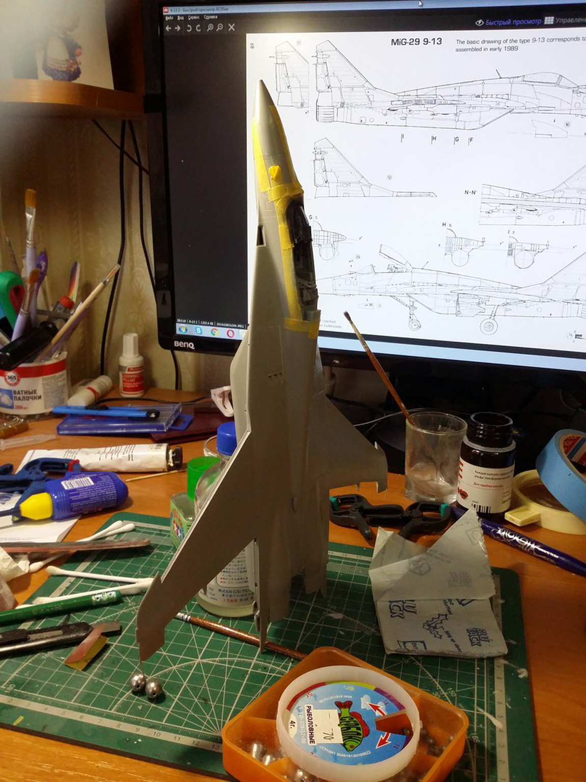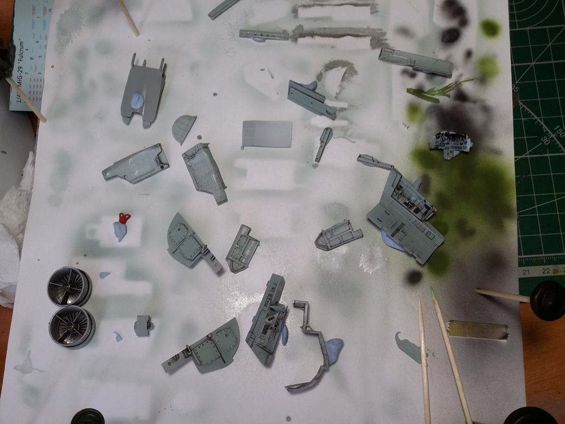 Ну раз автор темы разрешил, наберусь наглости и скину несколько фотографий моего видения постройки МиГ-29 (9-12) 1/48 от GWH.