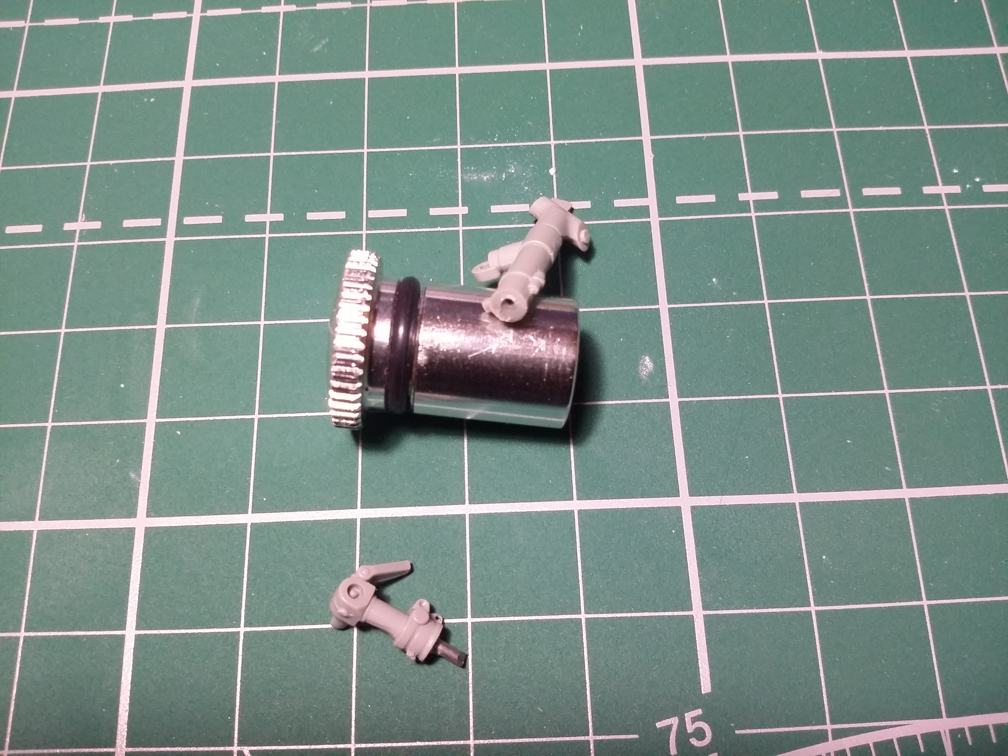 Из пластины пивжести, тянутого литника, нецензурщины, с четвертого захода получилось вот что (деталь малюсенкая, на фото она выглядит очень плохо, но в реальности получилось хорошо (пожалуй, лучшее, что я делал размером менее 5 мм в поперечнике...)):