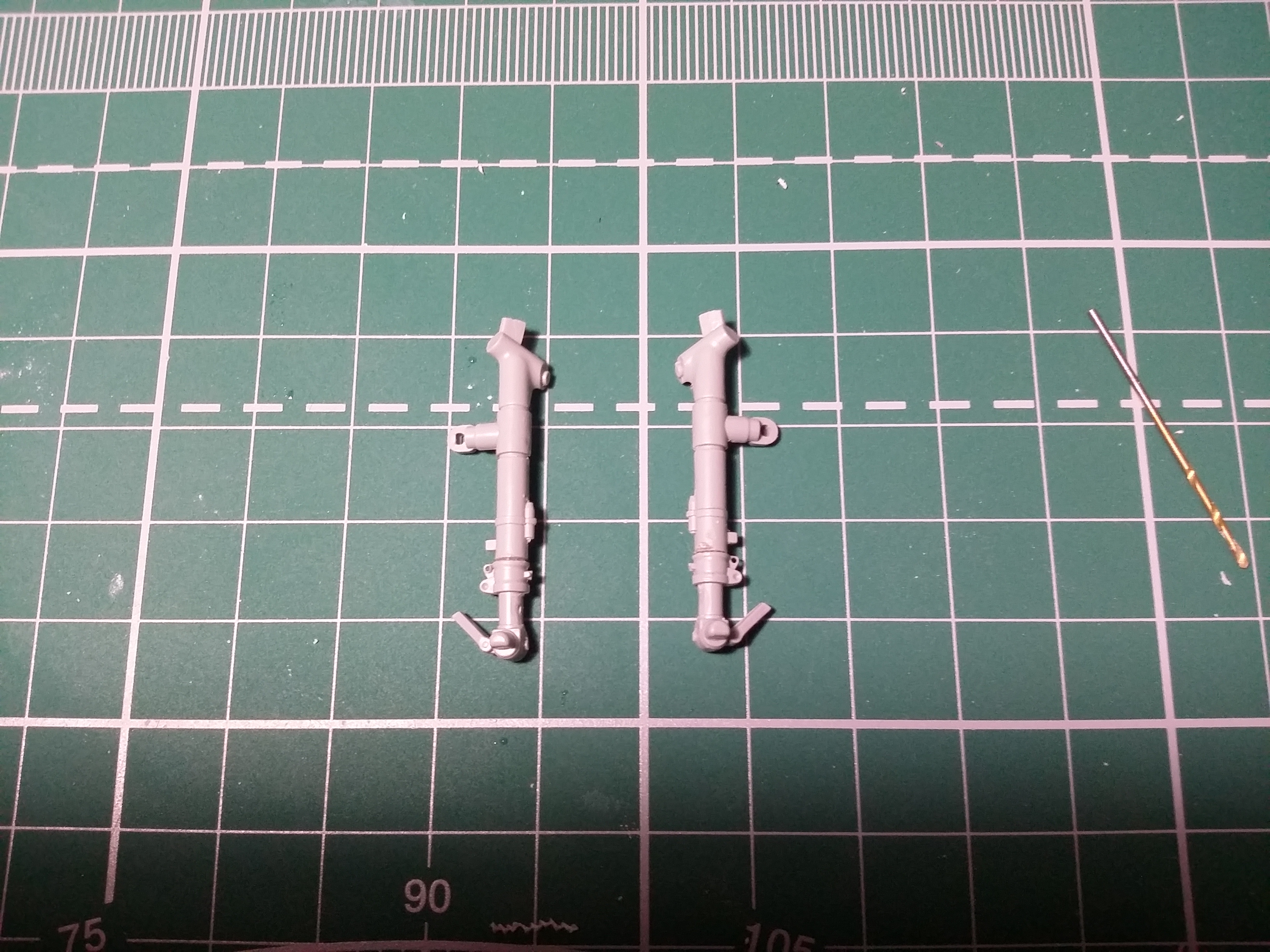 @Максим написал:Сегодня пока занялся основными стойками шасси, решил их укоротить на 3 мм, чтобы у МиГаря был более привычный стояночный угол. Распилил пополам, просверлил отверстия, сращивать их буду предворительно вставив штифты из обрезанных сапожных гвоздиков. Аналогичные штифты вживил и в стабилизаторы.