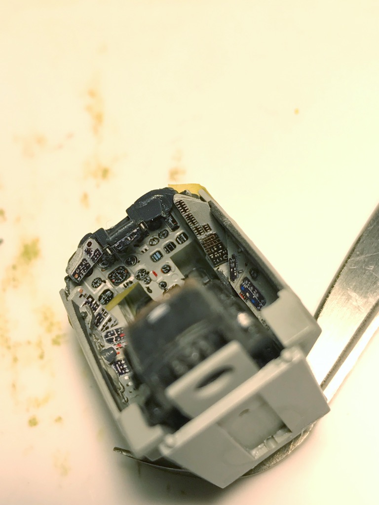что скажу про декали из набора... работать с ними странно показалось (отклеиваются, "жесткие", и абрис пленки не совпадает с абрисом "имитируемого прибора" - надо резать "контур" изображения, что вызывает другую сложность - собственно перенос декали с подложки на поверхность...). Была приборка от Эдуарда... она понравилась меньше (хоть и меньше нервов (лежала на случай, если запорю приборку из коробки).