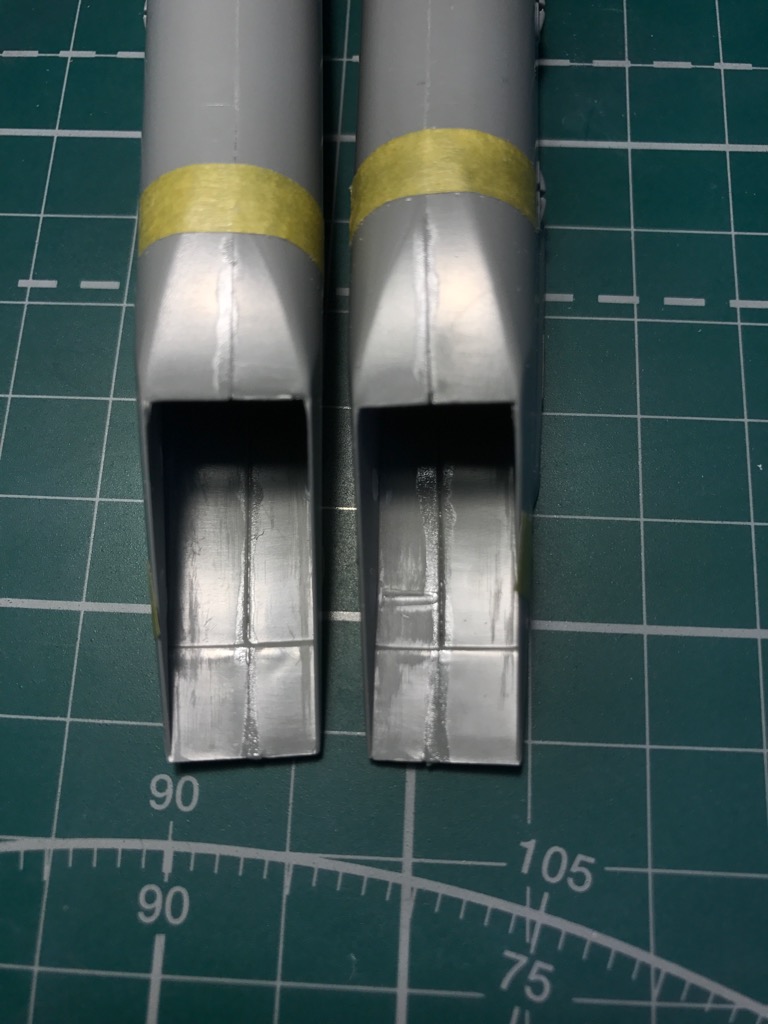 эти лепестки уже не видно, я их приклеил.. Выход есть еще один - нарастить канал, там где щель, это немного трудней. Ну да, ВЗ слабое место этого набора, немного придется повозиться с их доводкой, плюс второе место - под килями образуется ступенька, пришлось шпаклевать..