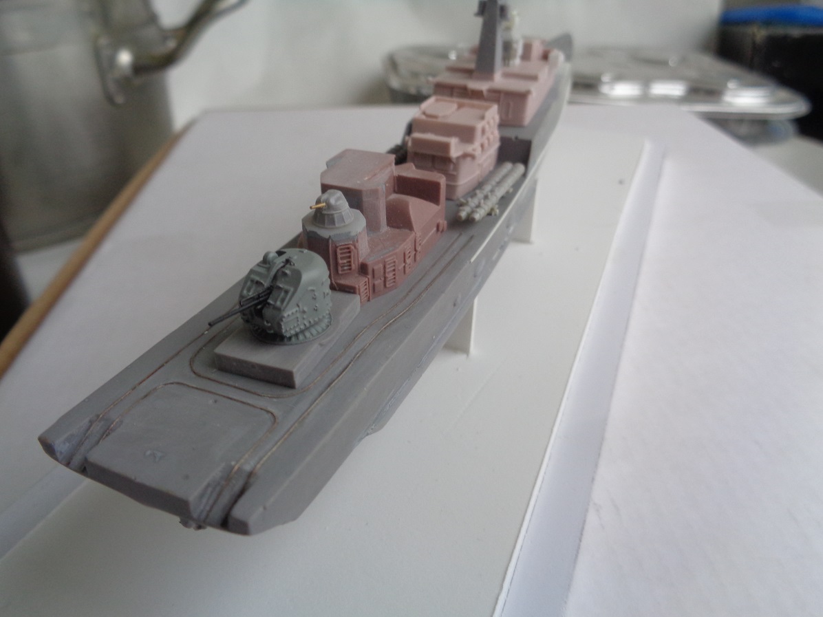 Основательно перепиливаю первоначальную версию МПК - под полную замену надстройки, исправляю геометрию корпуса. Кстати, "мастера" кроме корпуса тоже заменил, из надежды что кто-нибудь когда-нибудь захочет таки купить эту модель и сумеет договориться с нашим Генеральным о цене. Кстати, РБУ "авторский" - возился с ним как фанатик, а как только закончил, оказалось что его выпускает кто-то (Не Комбриг?)