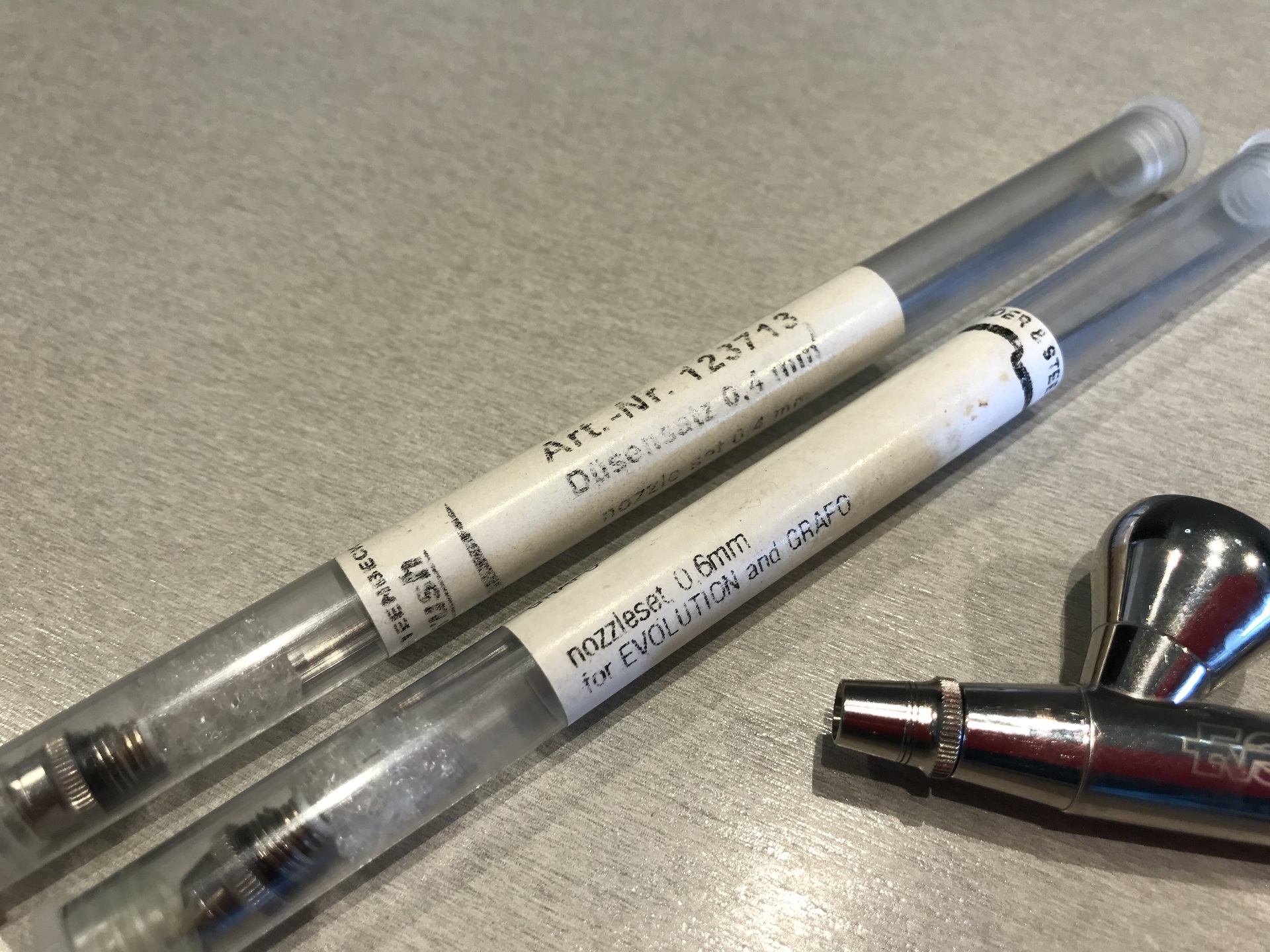 Перед каждой ,последующей заменой иглы и сопла , промывал , но НЕ чистил аэрограф.