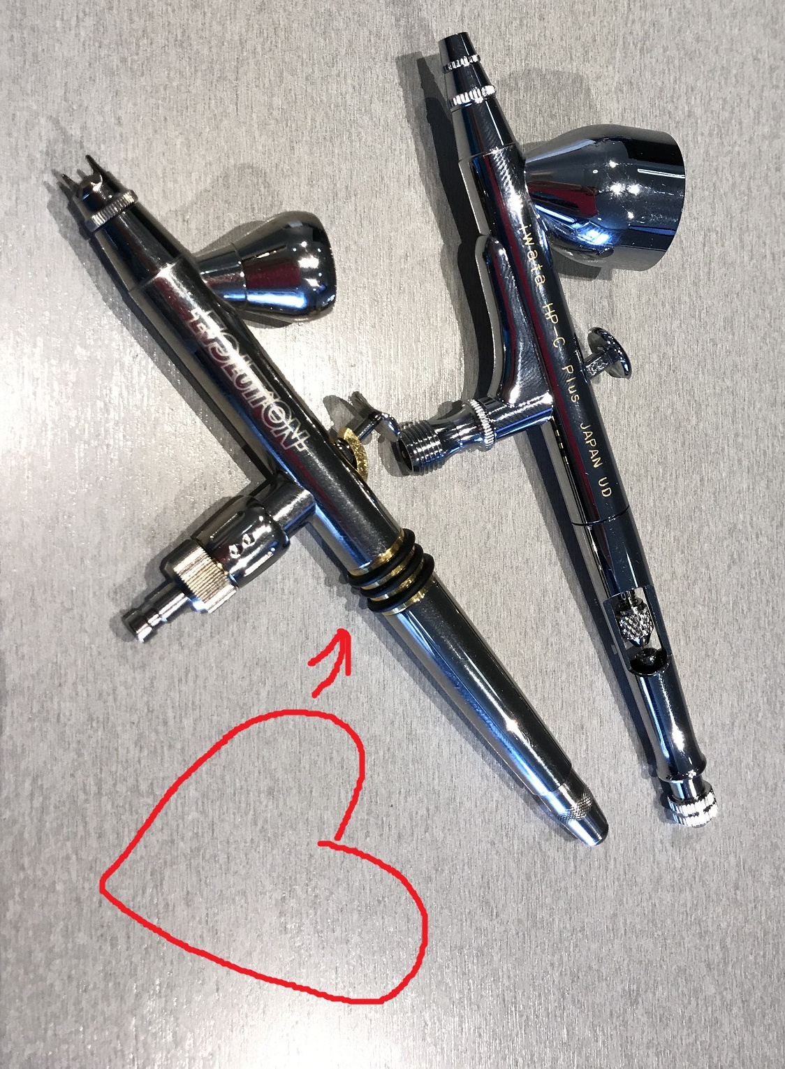 Собственно вывод набросился сам собой, съездил посмотрел, поддержал я Немца, не мое, маленький он какой-то, в моей лапе лежит не комфортно, бачок 2 мл, так это вообще миниатюра, 5 мл еще куда не шло. Ну и тут же я им попробовал дунуть, первое впечатление, что триггер прям на сотню миллиметра хода реагирует, чуть отпустил и краски меньше, хотелось бы более плавной реакции. Аппарат под филлигранные задачи, буду брать Ивату Эклипс. Всем откликнувшимся спасибо за советы. Так же обратил внимание, что у нас в Питере Иват нет в модельных магазинах, одни Немцы а почему? А потому что Ивату купил и забыл про магазин, Купил Немца придёшь за соплами и т.п., не хаю Немца, просто картинка в нете одно, а когда в руке другое.